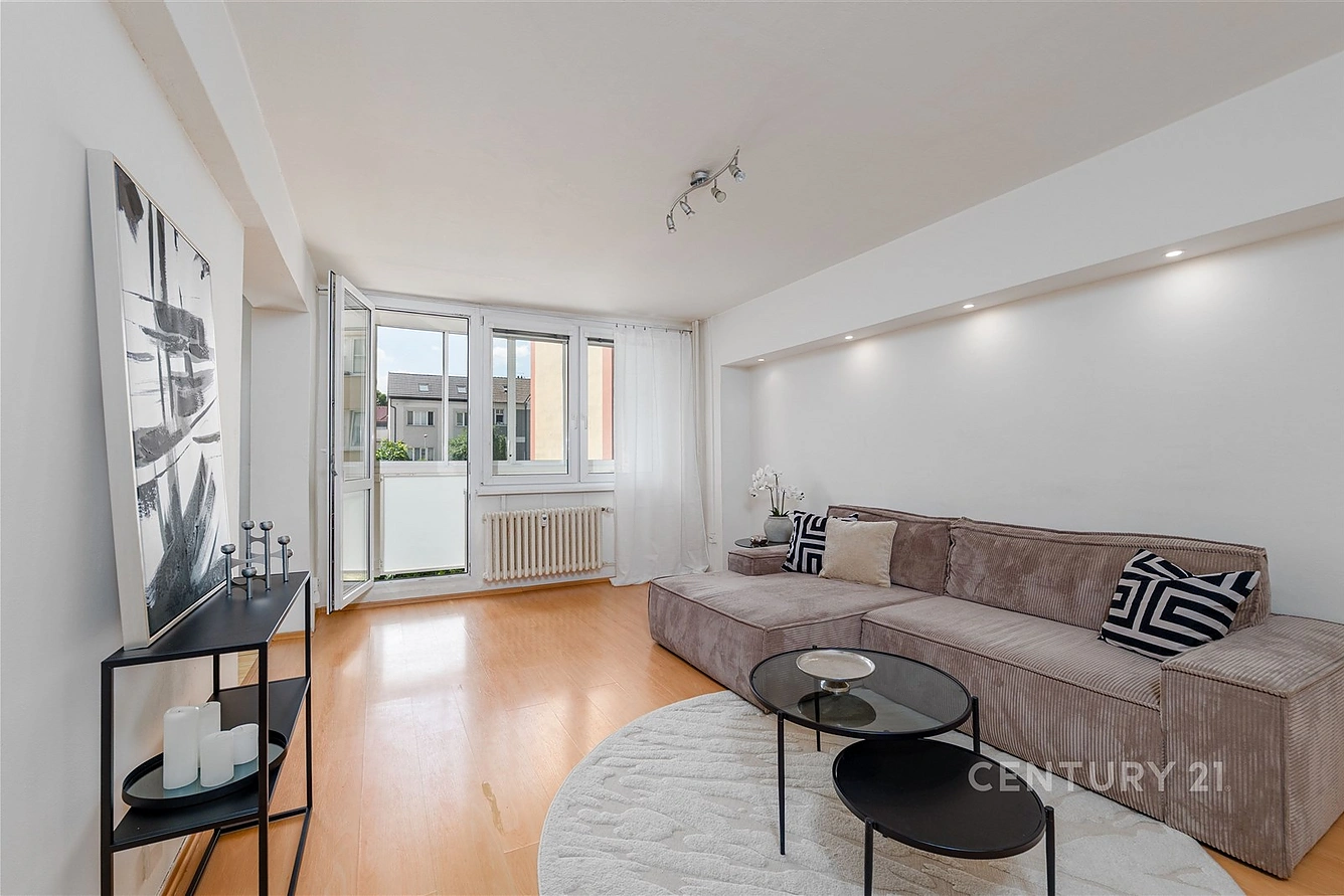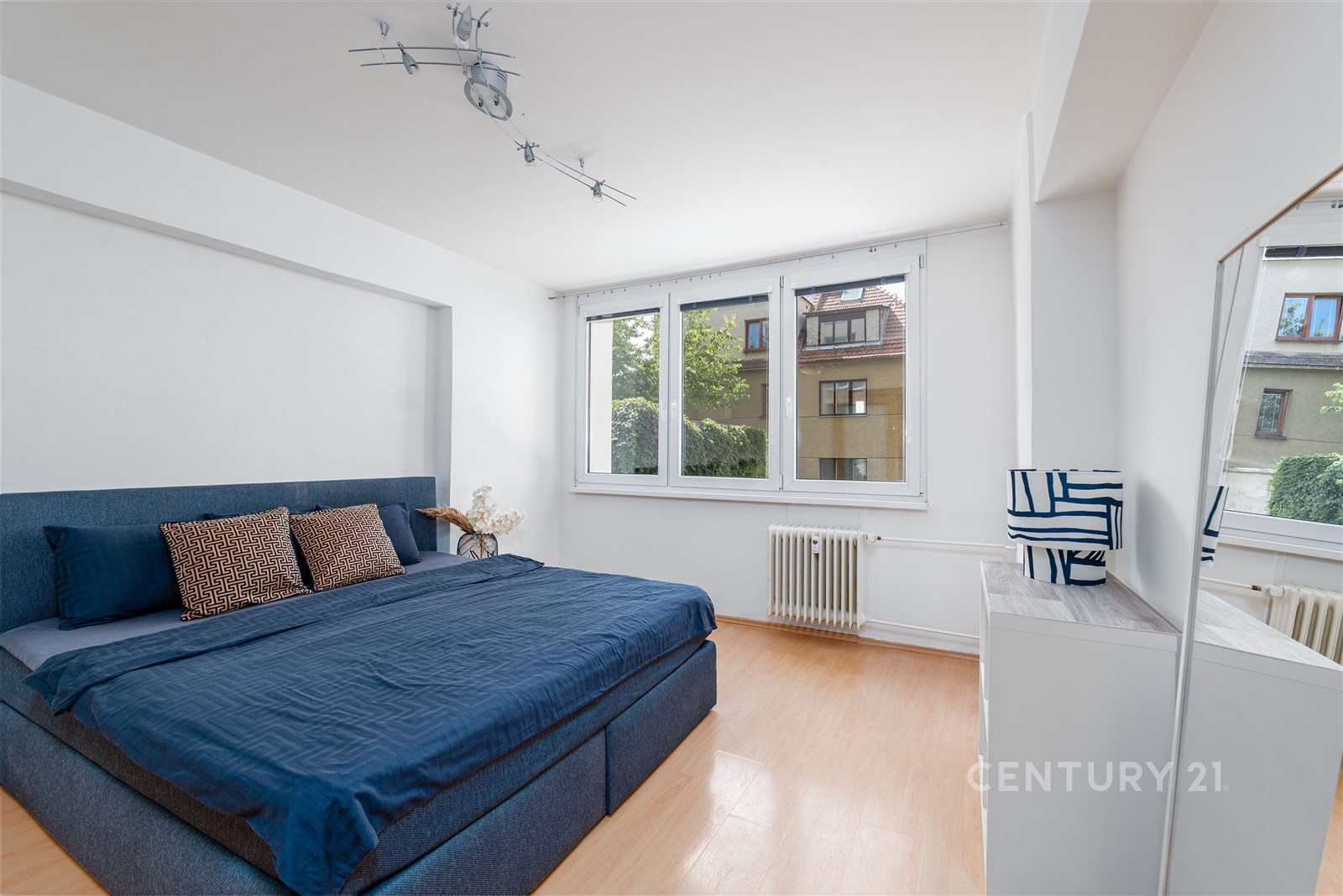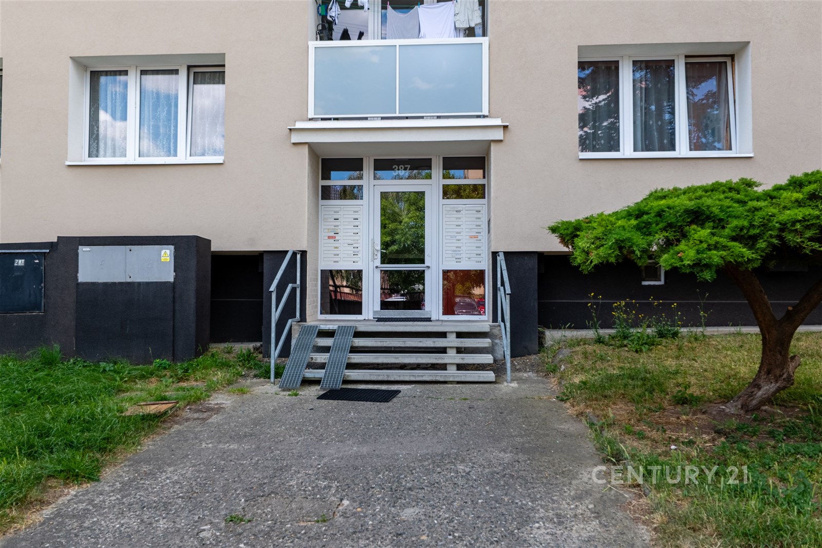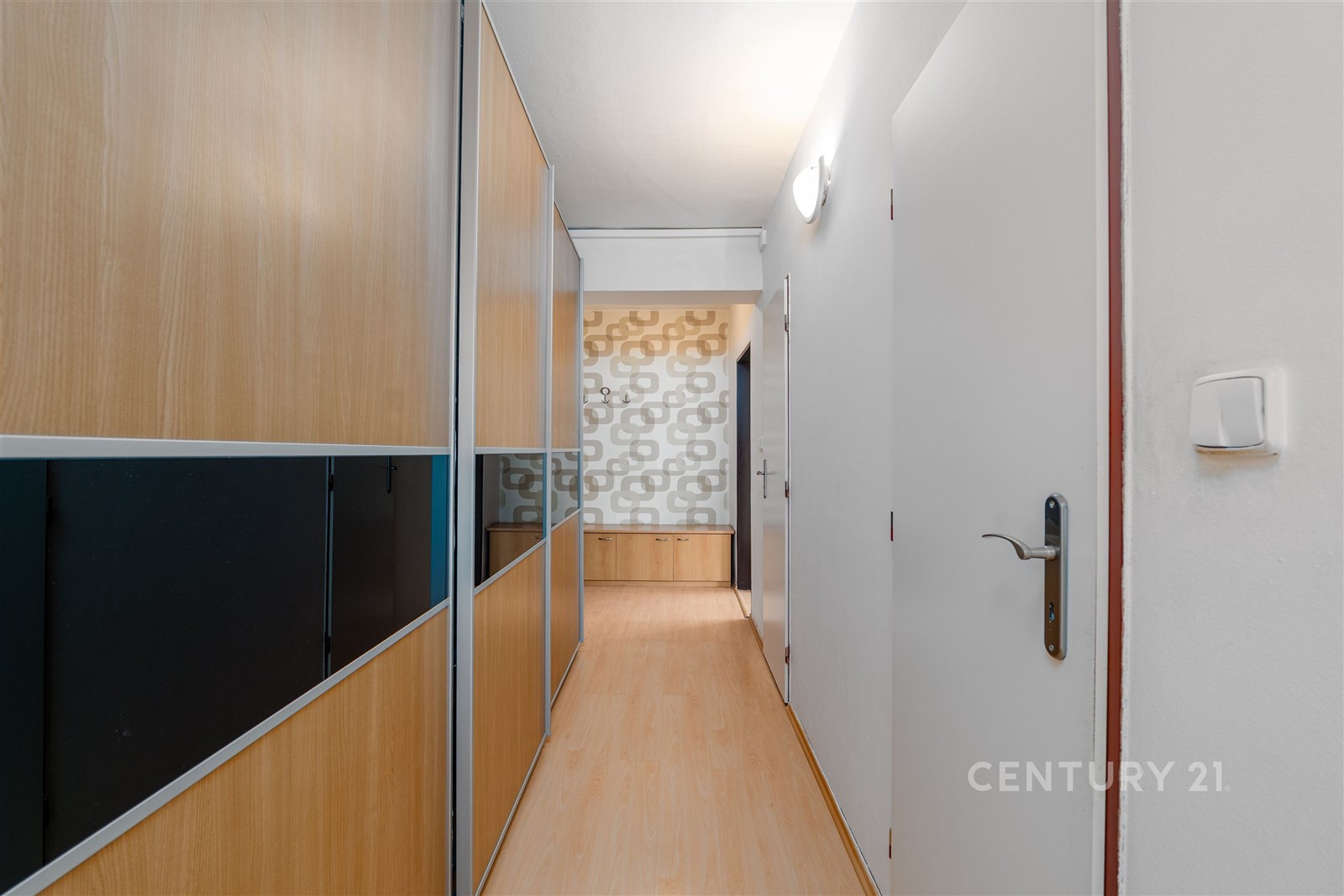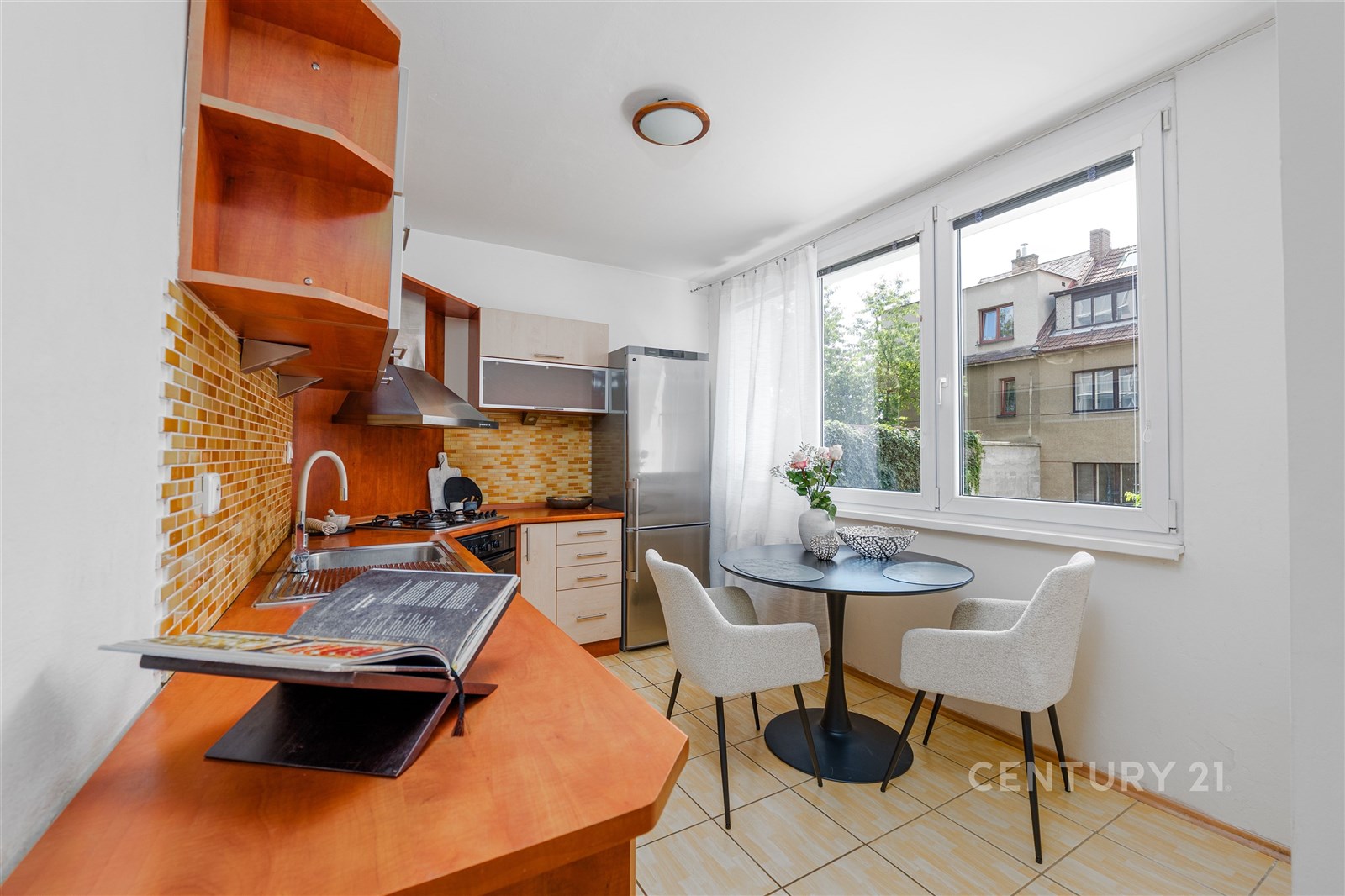 Byt se nachází v 1.NP klidného, čistého a zatepleného domu s výtahem. Náleží k němu také sklep. Dispoziční řešení 2+1 poskytuje: předsíň s vestavěnými skříněmi, koupelnu s rohovou vanou a umyvadlem, samostatné WC, dále prostorný obývací pokoj se vstupem na zasklenou lodžii, a prosvětlenou kuchyň s oknem a jídelním stolem, která volně navazuje na obývací prostor. Všechna okna jsou směřovaná do klidného vnitrobloku. Ačkoliv se byt nachází ve zvýšeném přízemí okna jsou v bezpečné výšce 2,5 m, a lodžie je uzamykatelná. Parkování je bezproblémové kolem domu.