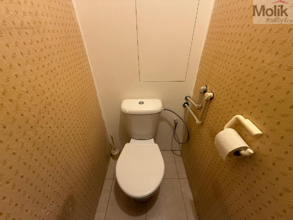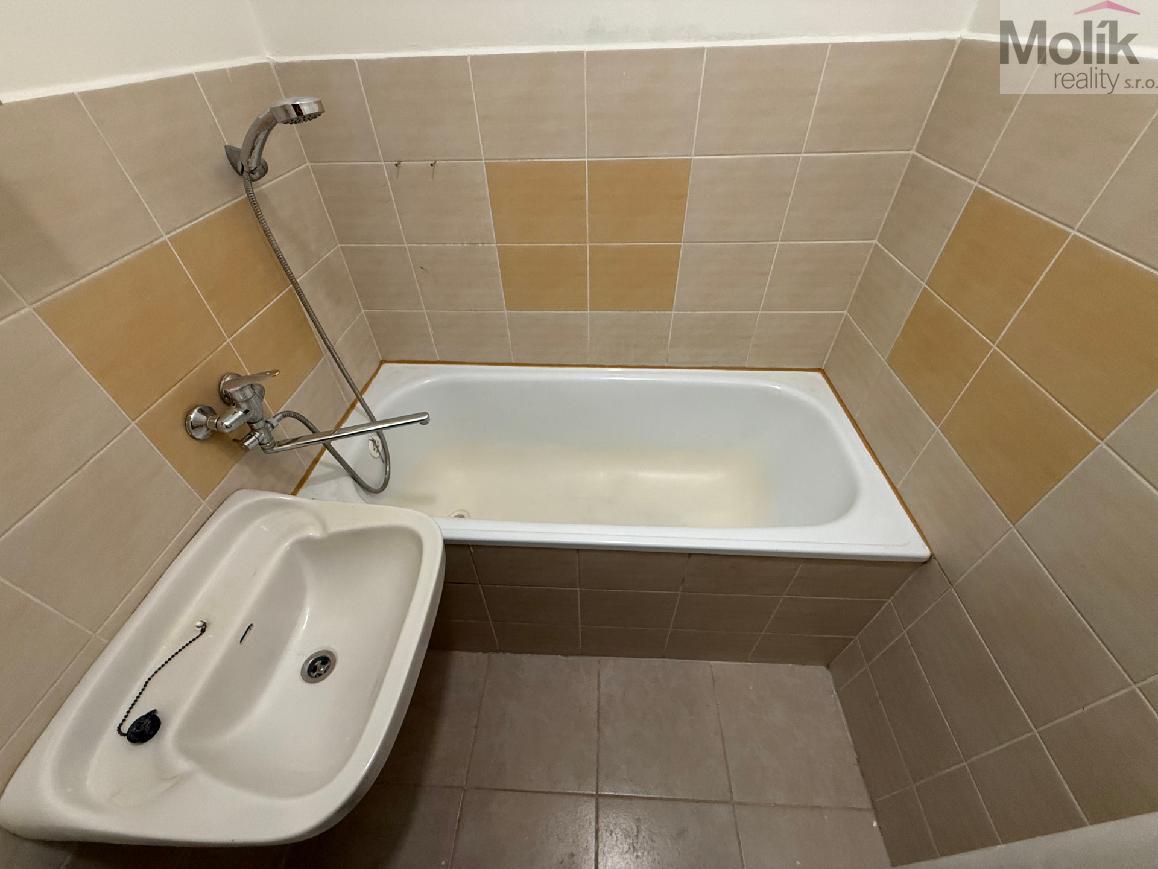 Bytová jednotka je vybílena, koupelna je oddělena od toalety - keramický obklad a dlažba.