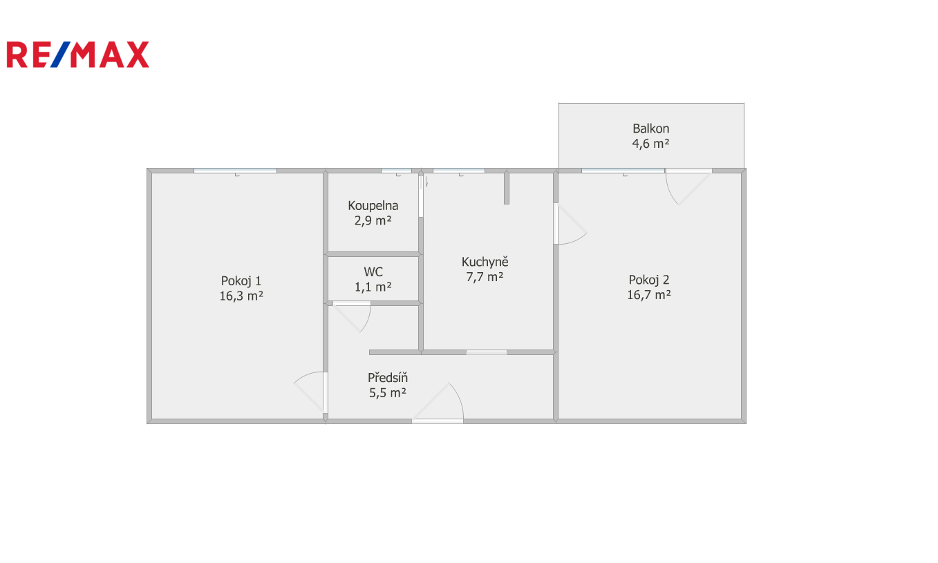 • 2 pokoje 16,3 m² a 16,7 m² – vhodné např. jako ložnice a obývací pokoj