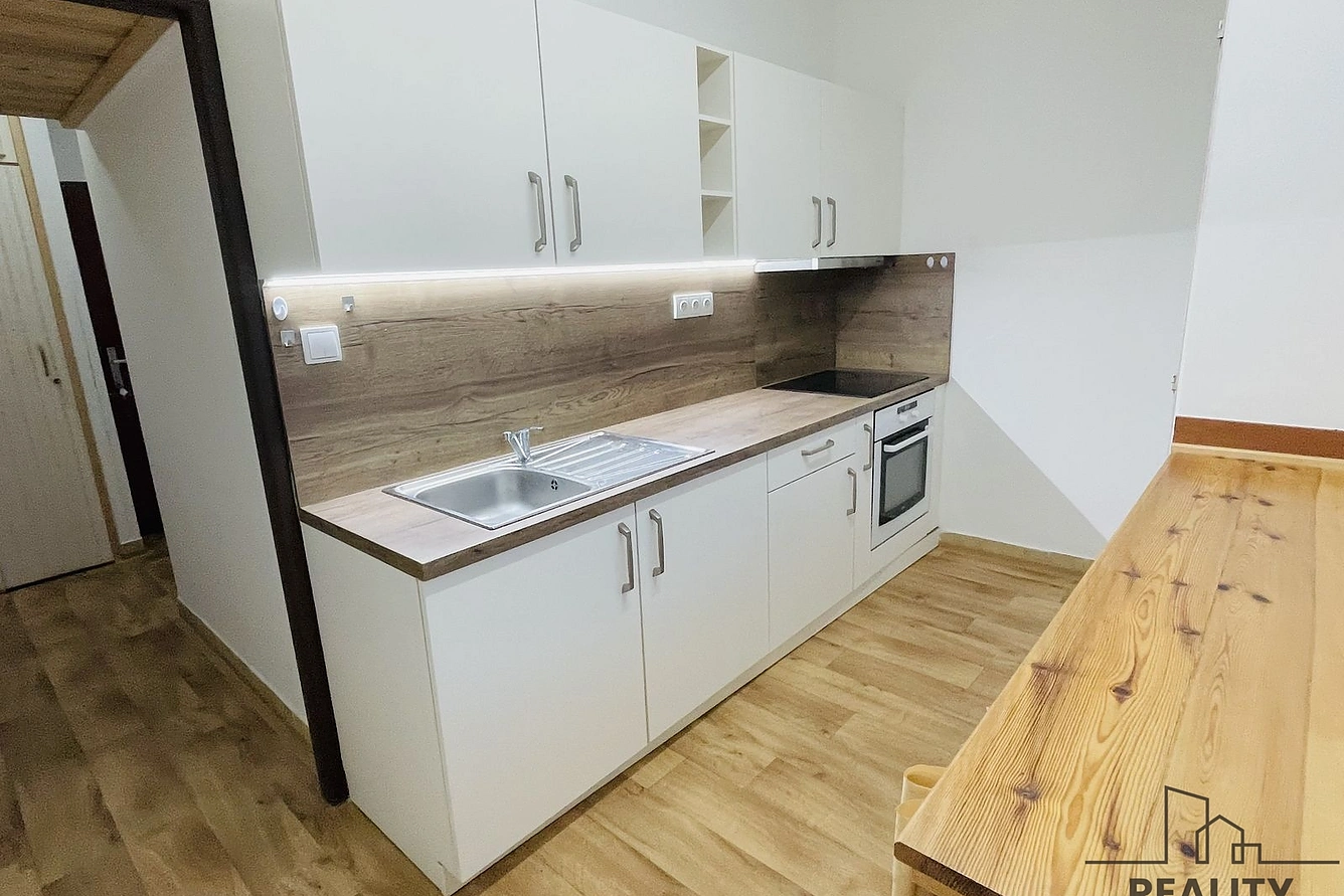 Kuchyně je vybavena moderní kuchyňskou linkou s elektrickým sporákem, potravinovou skříní a vestavěnou deskou, která může sloužit jako jídelní stůl. V koupelně je sprchový kout a umyvadlová skříňka a přípojka na pračku. WC je samostatně. Okna jsou plastová, z obou pokojů je vstup na balkon, jeden je zasklený. Na podlaze je položená PVC krytina a rozvody elektřiny jsou po modernizaci. Byt má západní orientaci.