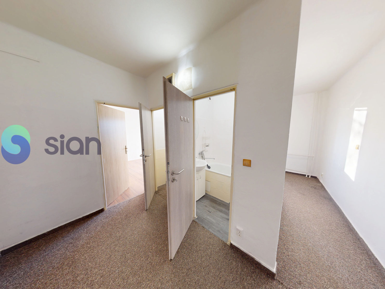 Nabízím k podnájmu slunný a hezky udržovaný byt o dispozici 2+1 a výměře 53 m², který se nachází ve třetím patře čtyřpodlažního panelového domu. Byt se skládá z obývacího pokoje, ložnice, kuchyně a koupelny s WC. V kuchyni je k dispozici elektrická trouba, plynový sporák a digestoř, v koupelně se nachází vana a umyvadlová skříňka. V pokojích jsou položeny plovoucí podlahy, zatímco v kuchyni a předsíni je koberec.