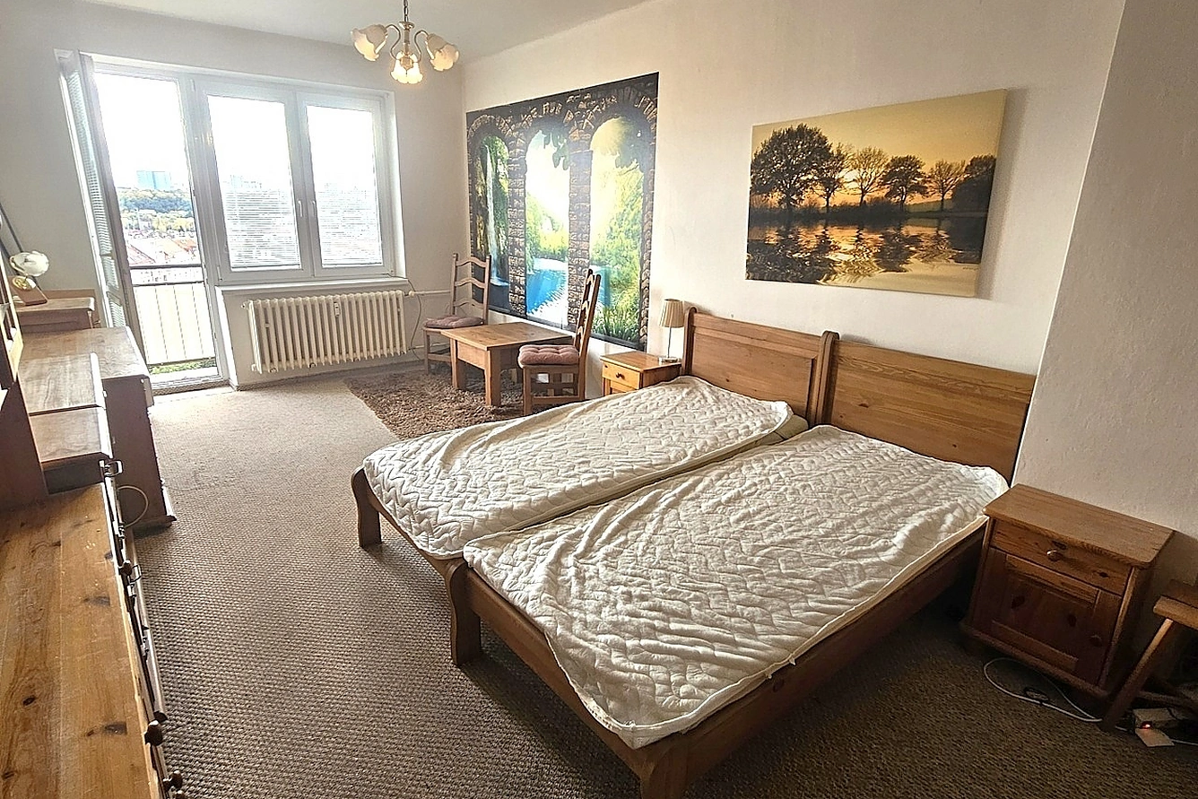 Byt sestává ze vstupní chodby, 2 samostatných pokojů (22 m2 a 14 m2), které mohou být vzájemně navíc průchozí, kuchyně, koupelny, WC a balkónu. Byt se nabízí kompletně zařízený kvalitním holandským nábytkem z masivu viz foto. Kuchyně je vybavena plynovým sporákem, lednici s mrazákem, nádobím a kuchyňské vybavením včetně el. odšťavňovače a rychlovarné konvice a vestavěnou pračkou. V koupelně je sprchový kout a umývadlo. Dále samostatné WC a vstupní chodba s vestavěnou šatní skříní a věšákovou stěnou se zrcadlem. Na podlaze je v obou pokojích koberec, v chodbě plovoucí podlaha, jinak dlažba. Okna jsou plastová se žaluziemi.