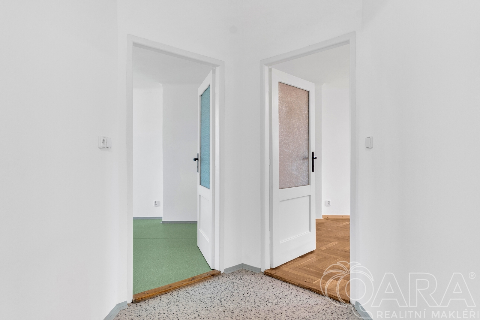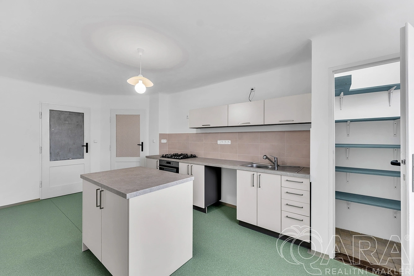 Přestože má kuchyně okno směrované do rušné křižovatky, díky novým plastovým oknům máte v bytě zajištěné ticho a klid. Okna z obou klidových pokojů jsou otočena do zelené zóny směrem k potoku.