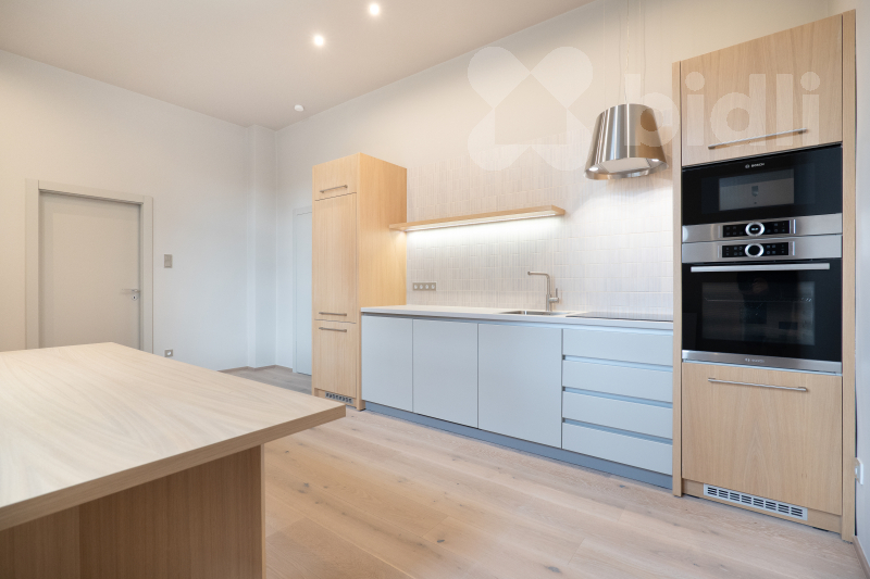 Při rekonstrukci byl kladen důraz na luxusní provedení, kde byly využity materiály ve vysokém standardu - kvalitní kuchyňská linka na míru, dřevěné plovoucí podlahy, luxusní obklady a dlažby v dekoru kamene, sanita v grafitovém odstínu, LED podsvícení atd. Byt má vlastní elektrický kotel na vytápění a zásobník na ohřev vody.