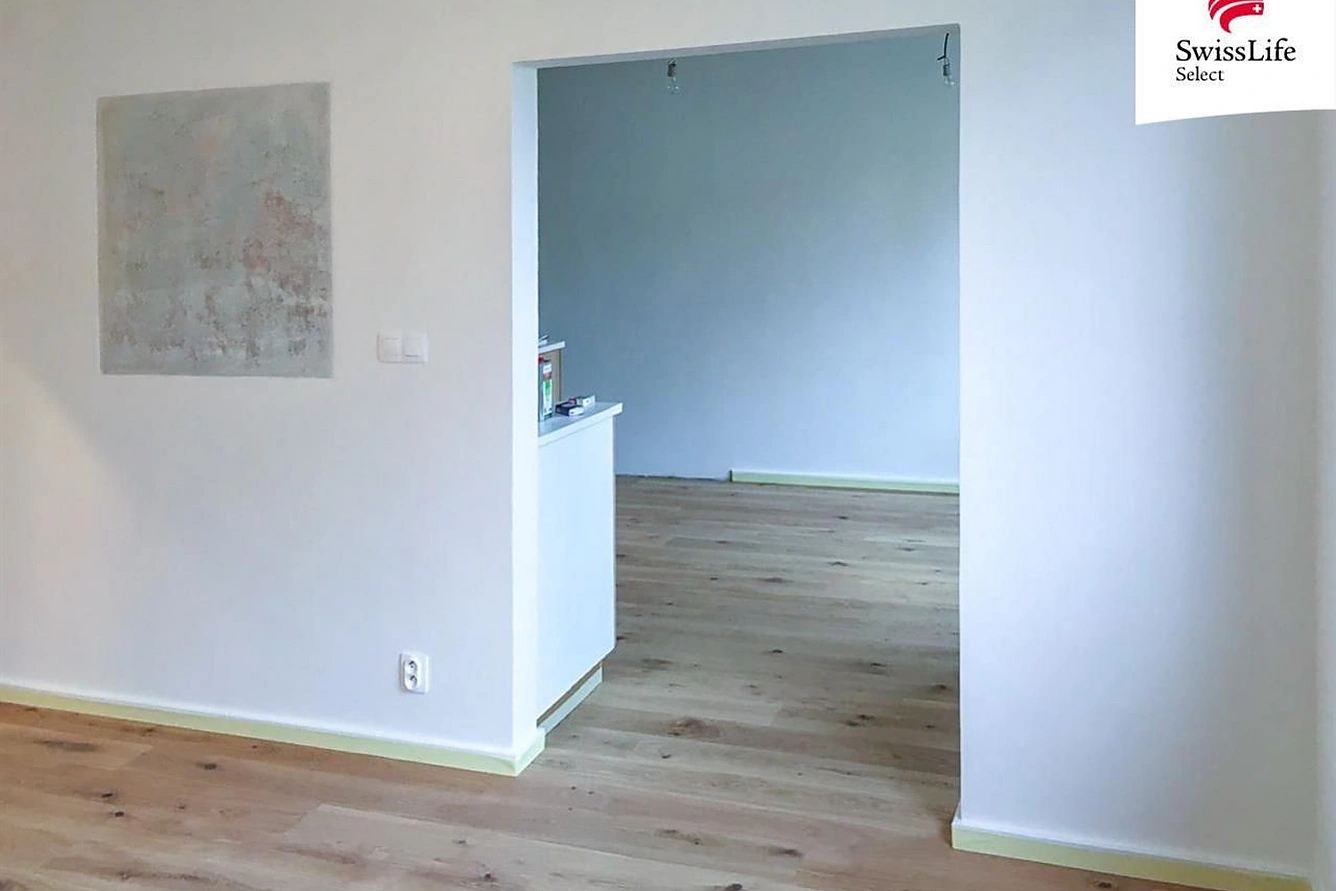 Byt působí vzdušně a moderně nové dřevěné podlahy mu dodávají hřejivý charakter. Čistý design umožní, abyste si byt zařídili zcela podle svého vkusu.