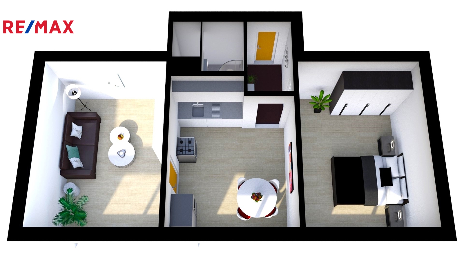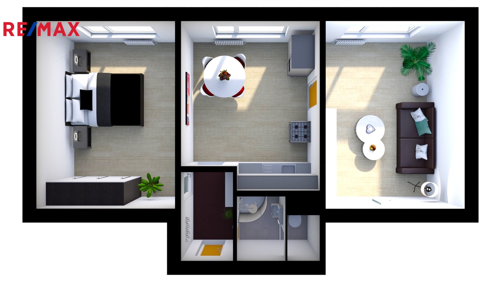 Dispozičně nabízí prostorný obývací pokoj, světlou kuchyň s novou linkou, pohodlnou ložnici a moderní koupelnu se sprchovým koutem a WC, vstupní chodbu.