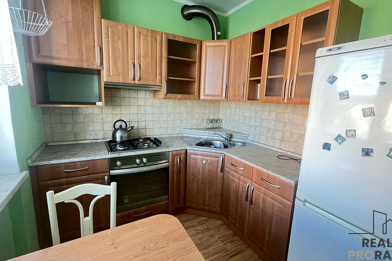 Součástí je kuchyňská linka se spotřebiči (lednice s mrazákem, trouba, varná deska, digestoř). Dispozici tvoří obývací pokoj, samostatná ložnice a koupelna s toaletou. K dispozici je také technická zasklená lodžie.