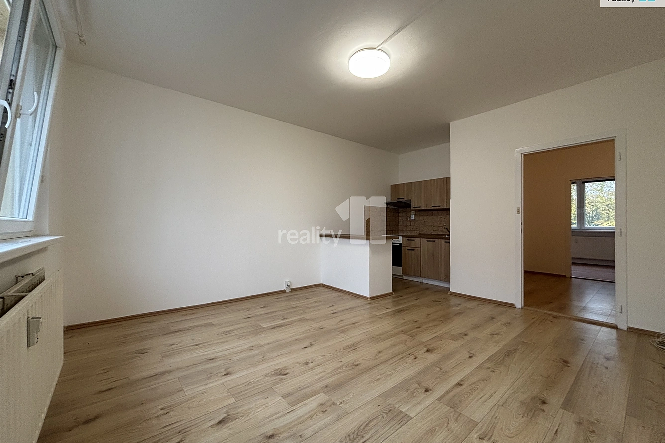 Dispozice nabízí: obývací pokoj s kuchyňským koutem, samostatnou ložnici, prostornou chodbu, koupelnu s vanou a WC.