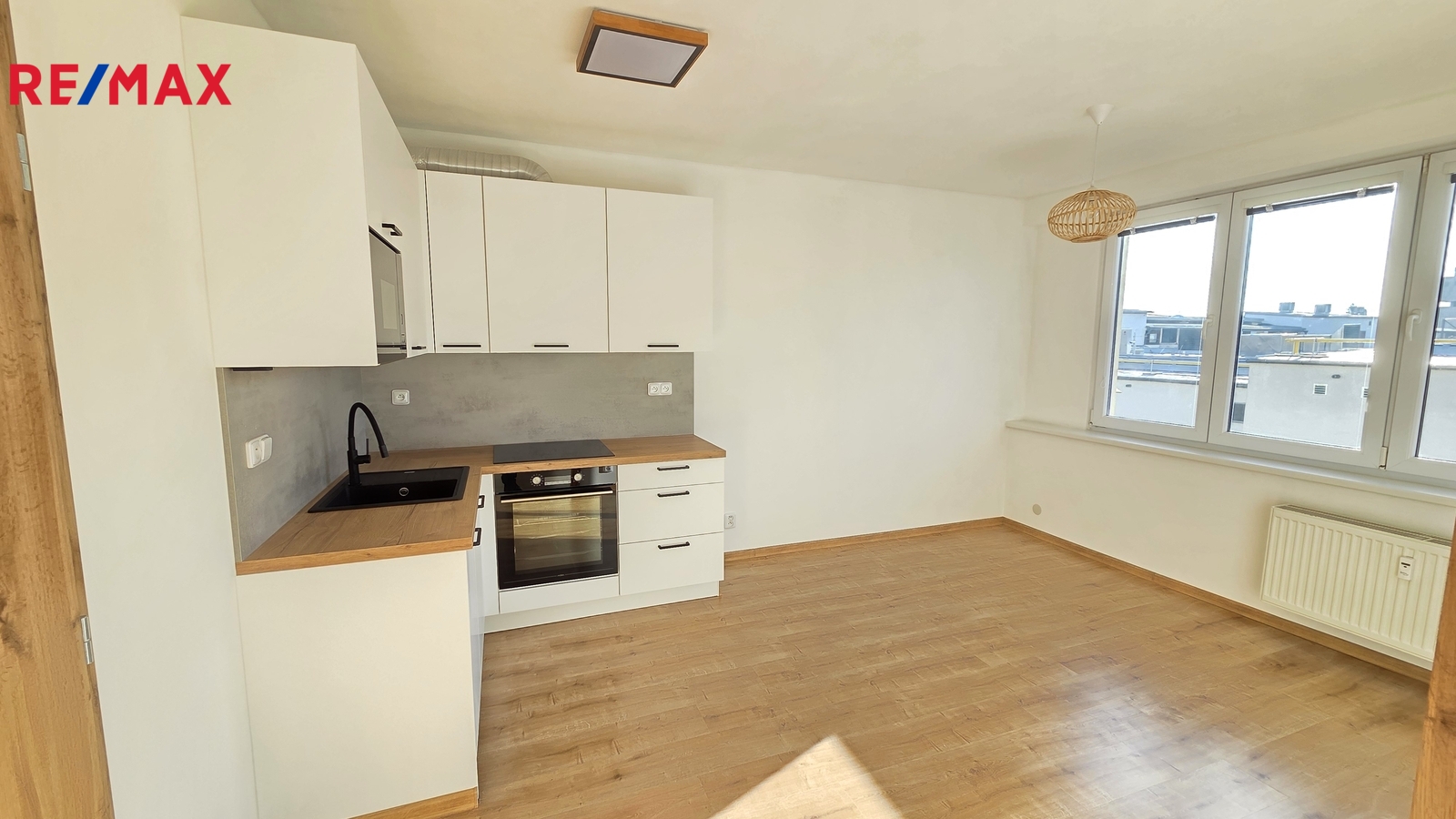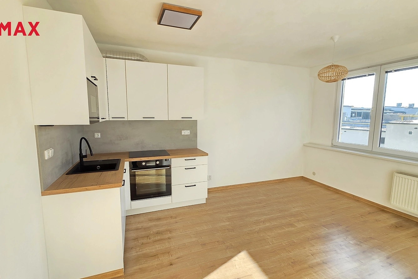 Bytová jednotka s podlahovou plochou 40 m2, umístěná v 5. patře panelového bytového domu, prošla kompletní rekonstrukcí v rámci, které bylo vybudováno zděné jádro, instalovány nové rozvody elektřiny, nové dveře s obložkovými zárubněmi, položena laminátová plovoucí podlaha a dodána nová kuchyňská linka s vestavnými spotřebiči (myčka, mikrovlnná trouba, indukční varná deska, elektrická trouba). Nájemcům je dále k dispozici sklep 2 m2 umístěný v přízemí domu.