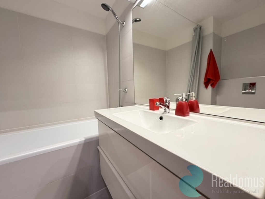 Byt o dispozici 2+kk disponuje velkým obývacím pokojem, který je moderně spojen s kuchyňským koutem, samostatnou ložnicí a světlou koupelnou s vanou. Kávu si vychutnáte na lodžii s posezením. Velkou výhodou je pak kryté parkovací stání přímo v domě, které je součástí nájemného.