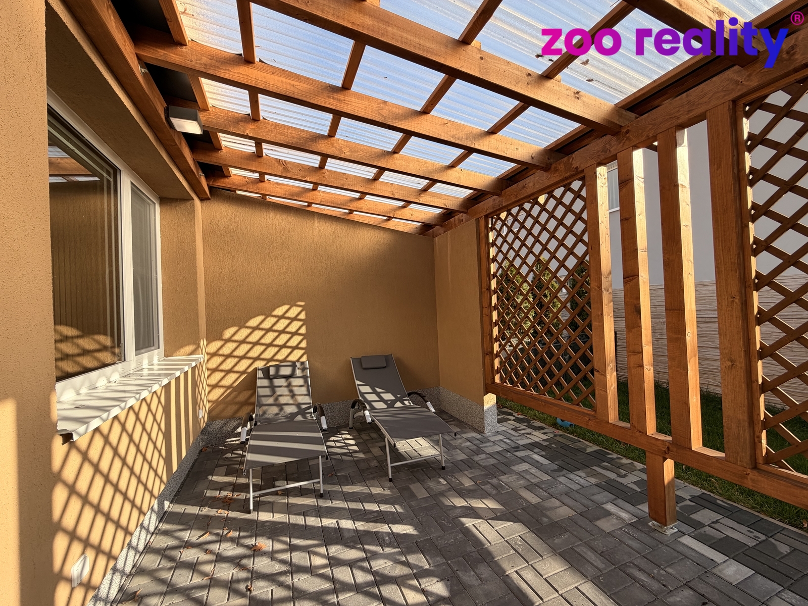Součástí bytu je zastřešená terasa o velikosti 40 m², která je ideálním místem pro relaxaci, grilování či užívání si slunečných dní.