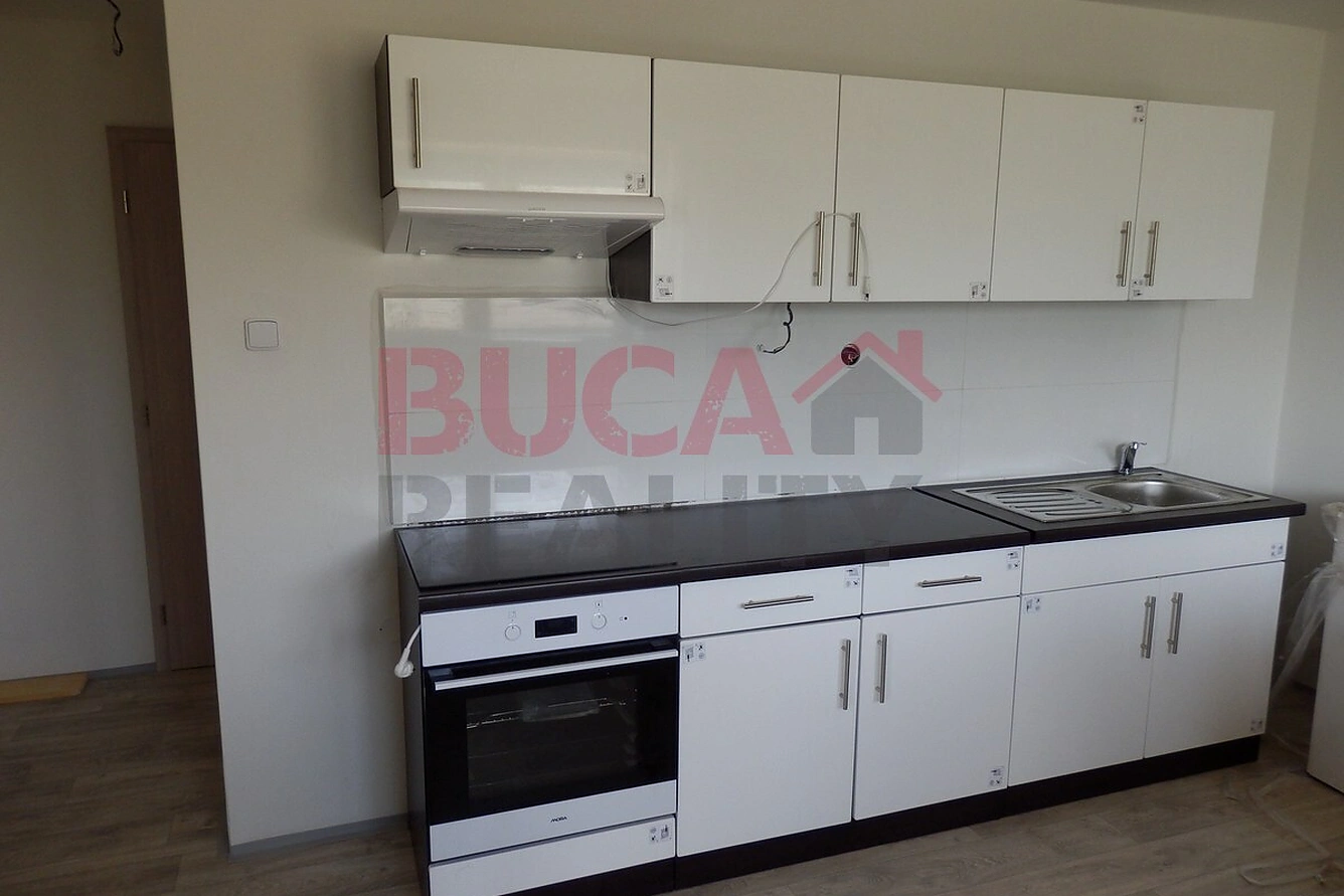 Byt o dispozici 2kk a vy?me?r?e 32 m2 se skládá? z obývacího pokoje s kuchyňským koutem, který je vybaven moderními vestavenými spotřebiči (sklokeramická? deska, trouba, digestoř?), ložnice, koupelny s WC a úložným prostorem pod schodištěm.