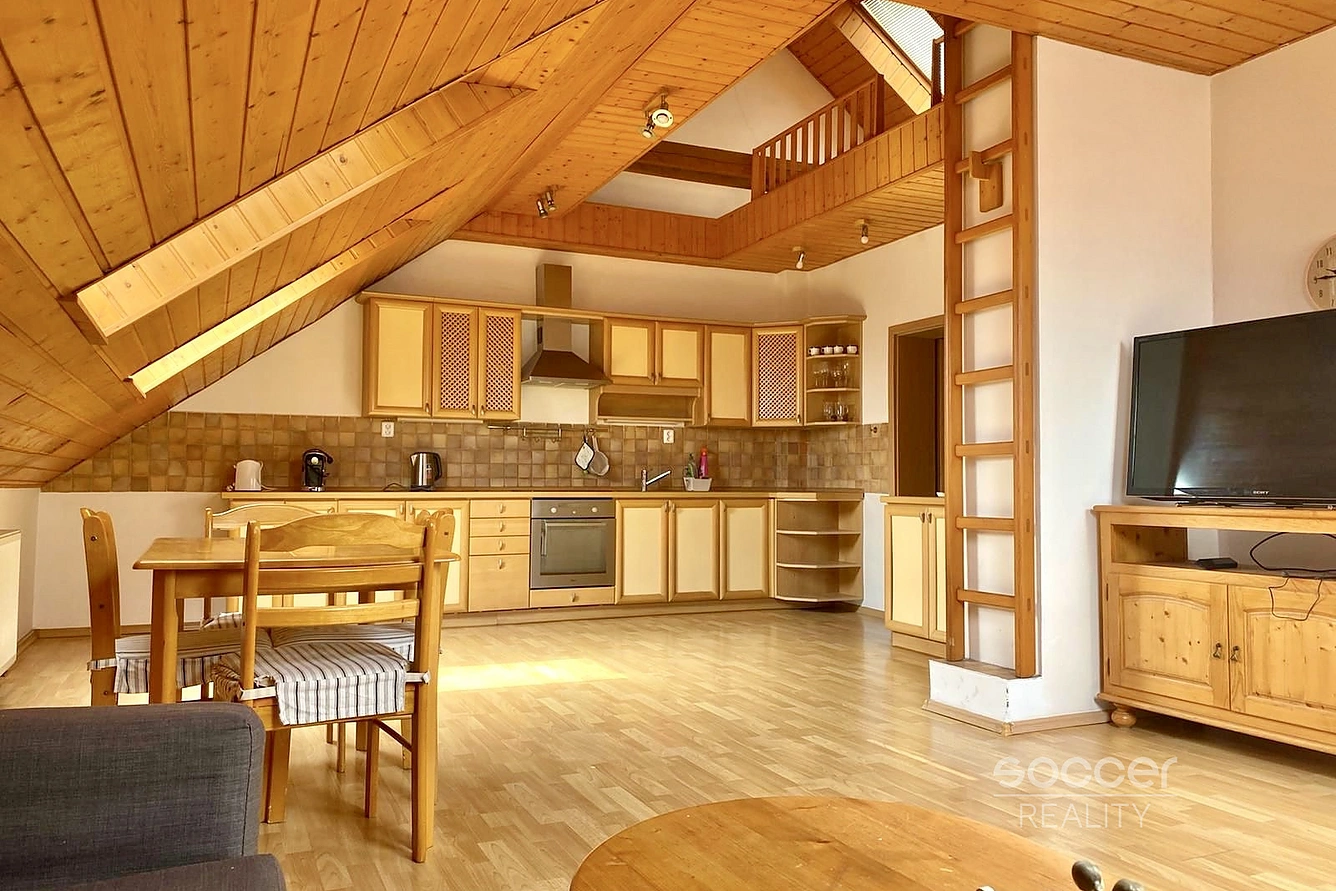 Hledáte příjemný byt s jedinečnou atmosférou? Pak Vás může oslovit tato nabídka. Byt je plně vybavený a nachází se v podkroví dobře udržovaného domu (bez výtahu). Jedinečný interiér s prvky dřeva vytváří kouzelnou atmosféru.