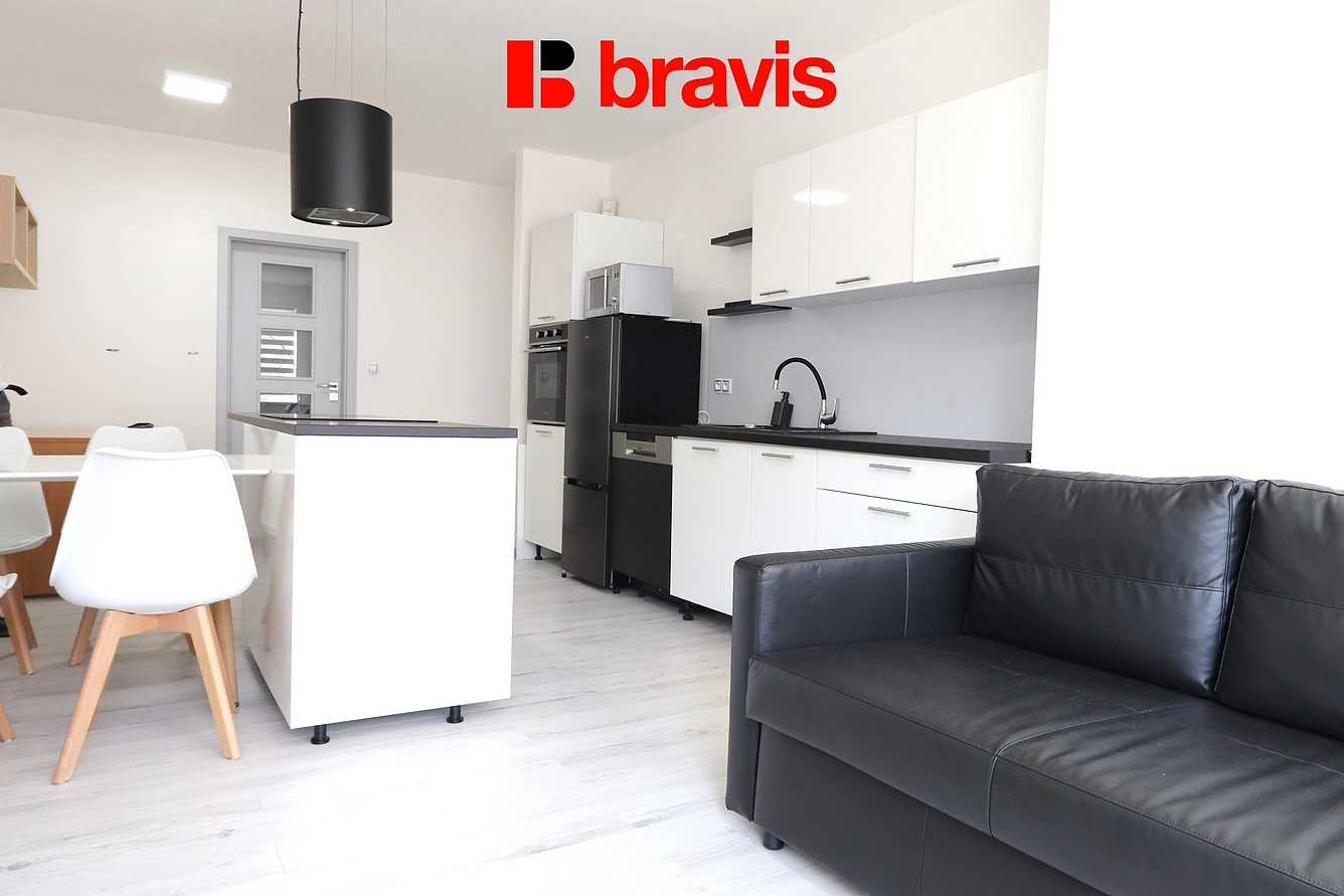 Ve výhradním zastoupení majitele nabízíme k pronájmu zařízený byt 2+kk v Modřicích na ulici Bobravská.Byt o velikosti 50 m2 se nachází v přízemí cihlového domu, náleží k němu parkovací stání až pro 2 auta a sdílená zahrada.Kuchyňská část je vybavena kuchyňskou linkou s lednicí a mrazákem, dřezem s baterií, mikrovlnnou troubou a myčkou. Na ostrůvku se nachází indukční varná deska a designový odsavač. Jídelní část je vybavena stolem se 4 židlemi. Obývací část je zařízena rozkládací sedačkou, lampou a komodami. V rohu místnosti je umístěn pracovní stůl se 2 židlemi.Ložnice je zařízena šatní skříní, dvoulůžkem s úložným prostorem a nočními stolky. Předsíň nabízí úložný prostor ve formě šatní skříně. Dále se zde nachází botník a zrcadlo. V koupelně je podlahové vytápění a je vybavena vanou, umyvadlem se skříňkou, toaletou a pračkou se sušičkou.Velkou výhodou tohoto bytu je možnost využívat společnou zahradu za domem. K dispozici je i skladovací místnost.Vytápění je zajištěno centrálně plynovým kotlem. Okna jsou tříkomorová. Možnost připojení internetu je samozřejmostí.Byt je k dispozici od 1.12.2025.Prohlídky možné po dohodě s uvedeným makléřem.Nabízíme možnost zajištění pravidelného či nárazového úklidu naší úklidovou firmou.S ohledem na legislativní požadavek jeho zveřejnění, musí být nemovitost označena v en. třídě ,,G", což ovšem neznamená, že do této en. třídy opravdu patří.
