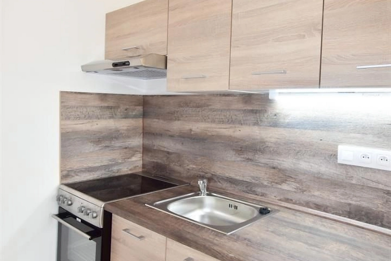 Je zde nová kuchyňská linka, elektrická sklokeramická deska, elektrická trouba, vana s umyvadlem a WC. Na podlahách je položeno lino a dlažba. Byt je volný k nastěhování od 1.11.2025.