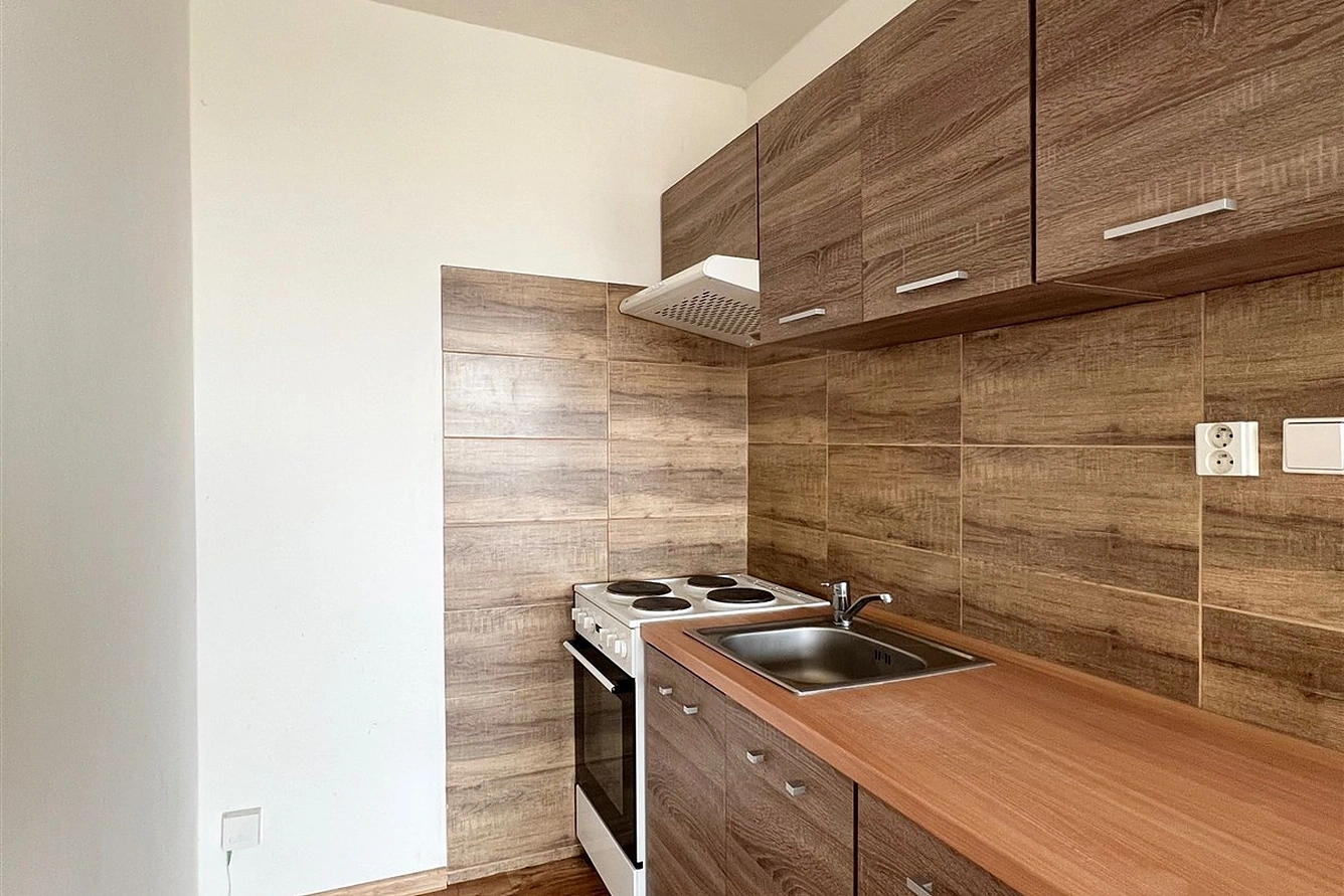 Je to slunný, čistý byt. Je zde kuchyňská linka, el. sporák, vana s umyvadlem a WC. Byt je volný k nastěhování od 1.12.2025.
