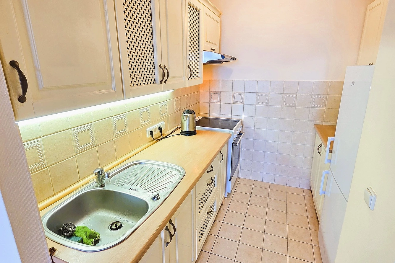 Nabízíme pronájem kompletně zařízeného bytu o dispozici 2+kk v Mendelově ulici na Hájích nedaleko metra C Háje na Praze 4. Byt se nachází v 11.N.P. (předposledním) v kompletně revitalizovaném a velmi pěkně udržovaném panelovém domě. Celková plocha bytu je 43 m2. K příslušenství patří sklepní kóje o patro níž o vel. 1,3 m2. V roce 2015 proběhla kompletní rekonstrukce, v rámci které se vybudovalo zděné jádro s novou koupelnou a kuchyňskou linkou a také vestavěné skříně jak v chodbě, tak v ložnici. Veškerý nábytek a vybavení, které vidíte na fotografiích je součástí pronájmu, tedy k nastěhování nejsou nutné žádné další investice. Byt je velice světlý s orientací na jih a volným výhledem. Před domem je parkoviště a ani balkón Vám chybět nebude, neboť do kilometrové vzdálenosti se nachází Hostivařská přehrada s lesoparkem. U domu je základní škola a školka a vstup do metra Háje je cca 250 metrů od vchodu. V sousedství se nachází Obchodní centrum Háje s mnoha obchody a restauracemi.Pro kompletní informace, rozpis poplatků, případně prohlídku, neváhejte kontaktovat makléře, který má pronájem na starost. Hledáme slušný pár, či rodinu bez domácích mazlíčků a nekuřáky.