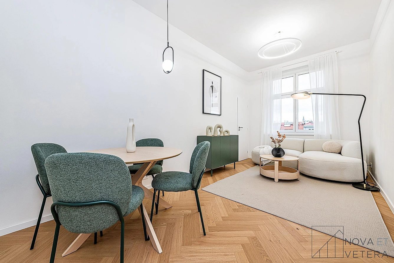 Byt prošel kompletní rekonstrukcí, která zahrnovala nové rozvody, podlahy, obklady i koupelnu se sprchovým koutem a sanitou Grohe. Součástí je nová kuchyňská linka se spotřebiči značky Gorenje (lednice s mrazákem, trouba, varná deska, myčka, digestoř). Dispozici tvoří obývací pokoj s kuchyňským koutem, samostatná ložnice a koupelna s toaletou. K dispozici je také technická místnost s přípojkou na pračku.
