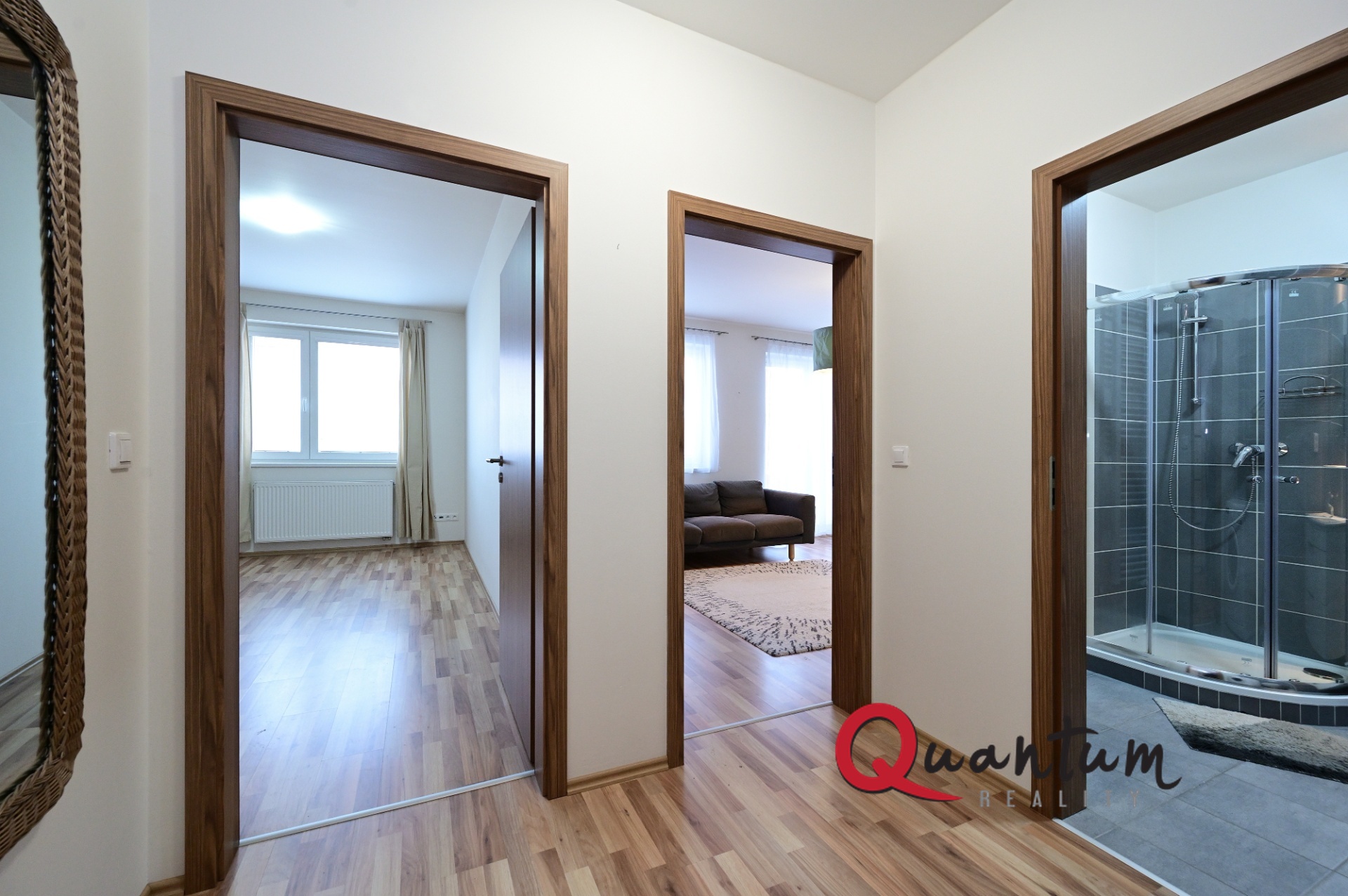 Exkluzivně nabízíme k dlouhodobému pronájmu moderní byt 2+kk o celkové ploše 48 m2 s balkonem o velikosti 8 m2 a klidným výhledem. Byt se nachází ve 3. patře novostavby bytového domu v projektu na ulici Farkašova, Praha 14 – Kyje. Byt se nabízí jako částečně zařízený, k dispozici je kuchyňská linka s vestavěnými spotřebiči, sklokeramická varná deska, elektrická trouba, digestoř, myčka a lednice s mrazákem. V předsíni se nachází menší skříňka, v obývacím pokoji jídelní stůl a TV stolek. Koupelna je vybavena sprchovým koutem a toaletou, byt je však bez pračky. V obývacím pokoji, ložnici, kuchyni a předsíni je položena plovoucí podlaha, v koupelně je dlažba a okna jsou plastová. Měsíční poplatky činí 4.400 Kč a zahrnují elektřinu, topení i vodu, vratná kauce je stanovena ve výši dvou měsíčních nájmů. Byt se nachází v atraktivní lokalitě s výbornou dostupností do centra, pouhé čtyři minuty chůze od autobusové zastávky Sicherova a v blízkosti stanice metra B – Rajská zahrada. Nedaleko se nachází také lesopark Arborka, který vybízí k odpočinku i procházkám, a v okolí je veškerá občanská vybavenost. Byt je k nastěhování od 1. prosince 2025. Dispozice bytu je velmi praktická a nabízí příjemné bydlení pro jednotlivce či pár. V případě zájmu o prohlídku mě neváhejte kontaktovat.