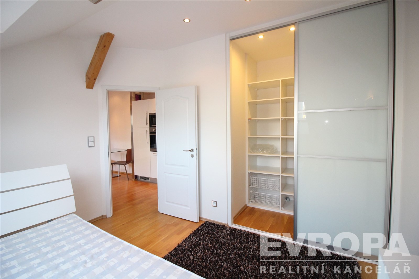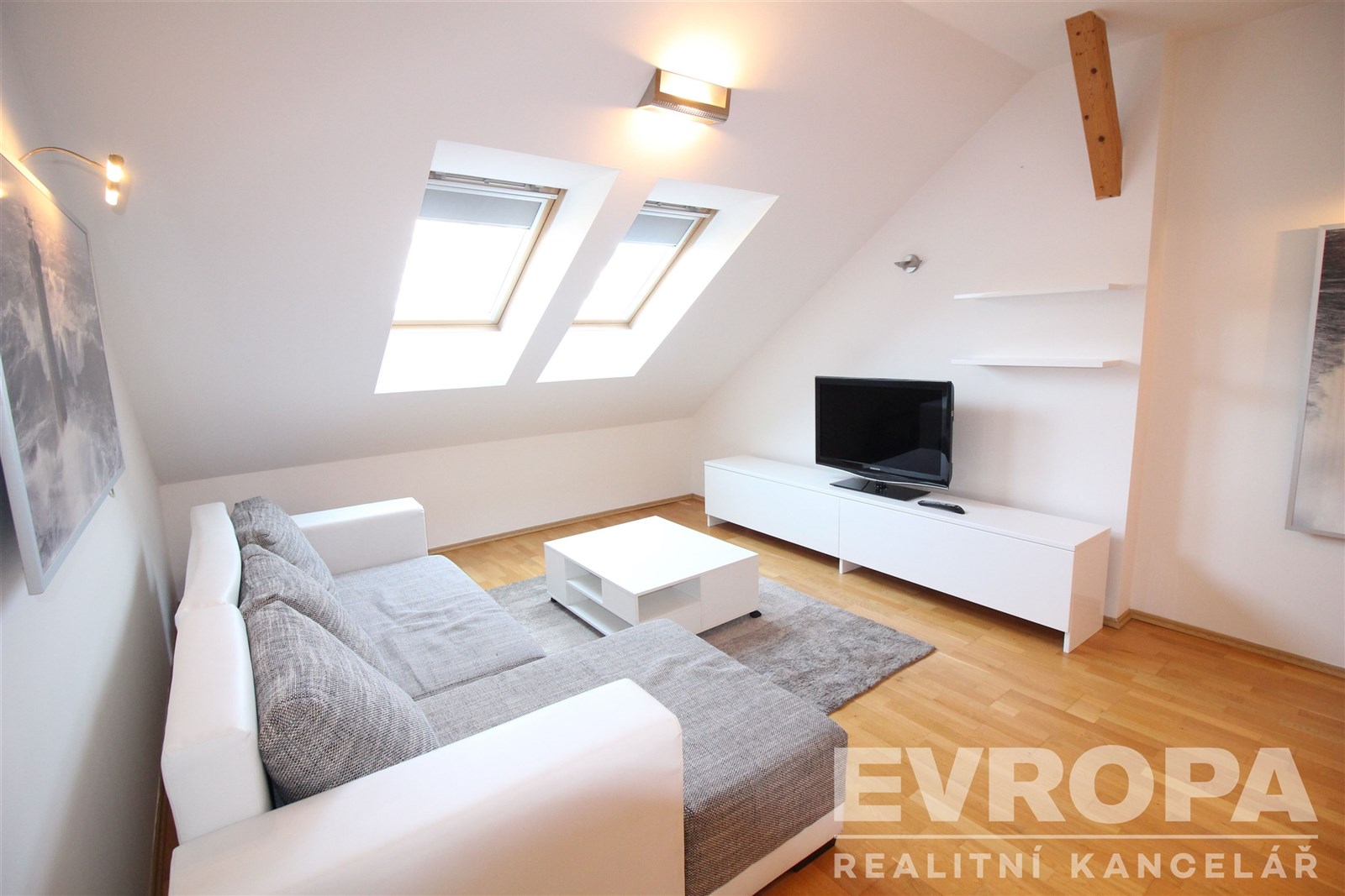 Nabízíme k pronájmu krásný byt, který se nachází ve čtvrtém patře bytového domu. Bytová jednotka byla nově kolaudována v roce 2008 a jedná se o podkrovní byt. Dispozice bytu je 2+kk, skládá se ze vstupní předsíně, prostorného obývacího pokoje, kompletně vybavená kuchyňská linka. Dále samostatná ložnice, doplněná o velkou praktickou šatnu. Velká koupelna s vanou, toaletou a pračkou. Byt je kompletně vybavený, včetně vkusného nábytku, který je na fotografiích.
