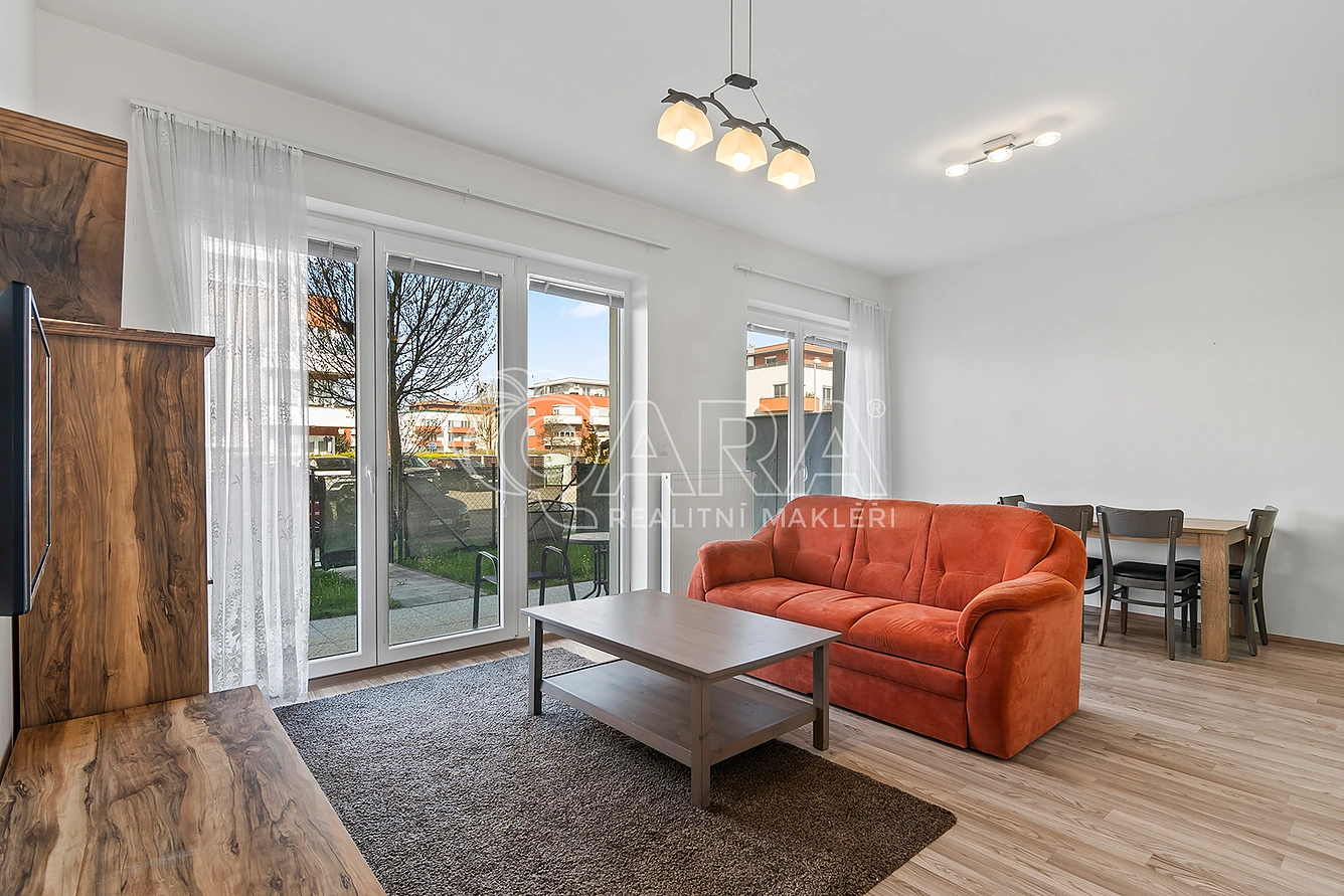Co je na tomto bytě opravdu skvělé, je přímý vstup z obou pokojů na zpevněnou terasu (27 m2) a k tomu na vlastní předzahrádku (+ dalších 36 m2). Tam si můžete v klidu vypít kávu, posedět s přáteli nebo si třeba něco ugrilovat. Koupelna je vybavena vanou se sprchovou zástěnou, toaletou, žebříkovým radiátorem a pračkou. Oceníte také praktickou komoru s regály uvnitř bytu, která vám poskytne spoustu úložného prostoru.