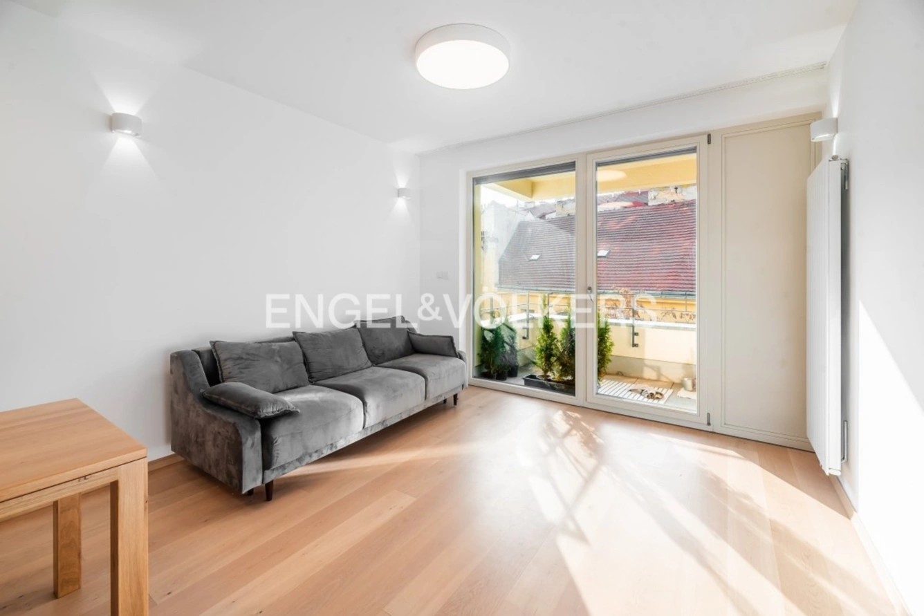 Zařízený byt 2+kk ve 4. nadzemním podlaží novostavby v projektu Villa Apus ve vnitrobloku. Dům disponuje recepcí a nachází se v klidné lokalitě v blízkosti Václavského náměstí. Moderní byt ve vysokém standardu se skládá ze vstupní chodby, obývacího pokoje s plně vybavenou kuchyní se spotřebiči Miele a z ložnice orientované do klidného vnitrobloku. Předností bytu je prostorný balkon do vnitrobloku. Dále je v bytě koupelna s toaletou, bidetem, prostornou sprchou a pračkou.Co se úložných prostorů týče, jsou v bytě se vestavěné skříně a komora na chodbě. Parkovací místo za poplatek 5 000 Kč / měsíc.
