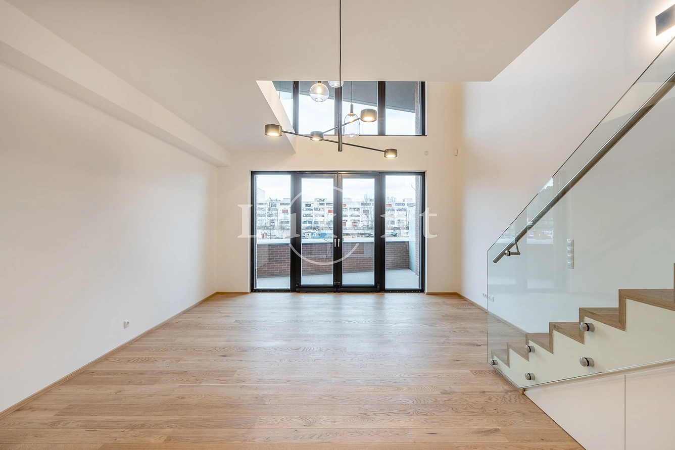 Nabízíme k pronájmu moderní mezonetový byt 2+kk o užitné ploše 73 m2 v novostavbě Prague Marina Nova, Praha 7 - Holešovice. Byt je situován v 1. podlaží bytového projektu, součástí je terasa s výhledem na řeku, sklep a garážové stání, které je zahrnuto v ceně.Dispozice zahrnují v přízemí vstupní halu s šatní skříní a technickou místností s pračkou, koupelnu se sprchovým koutem a toaletou, obývací pokoj s moderním kuchyňským koutem vybaveným všemi spotřebiči a vstupem na terasu. Patro disponuje otevřenou ložnicí s vestavěnou skříní, pracovním koutem a koupelnou s vanou a toaletou.Dřevěné podlahy, bezpečnostní vstupní dveře, francouzská okna. V objektu je stálá 24 hodinová recepce. Nadstandardní zařízení bytu odpovídá současným nárokům na komfortní a moderní bydlení. Projekt se nachází na oblíbené adrese Holešovic s rychlým dopravním spojením do centra a plnou občanskou vybaveností v dosahu. V blízkosti naleznete stanici Palmovka, Nádraží Holešovice a Vltavská.K dispozici od 1.12.2025