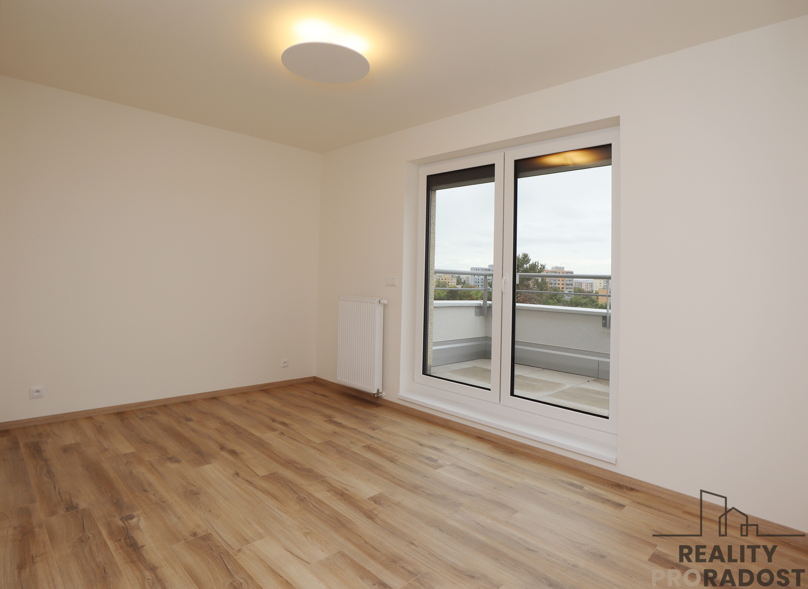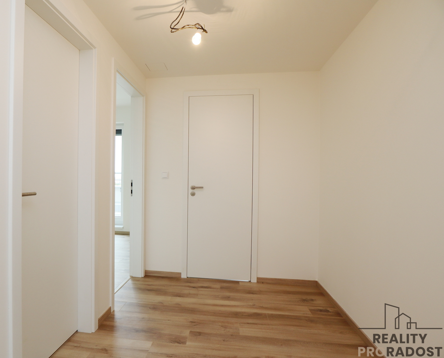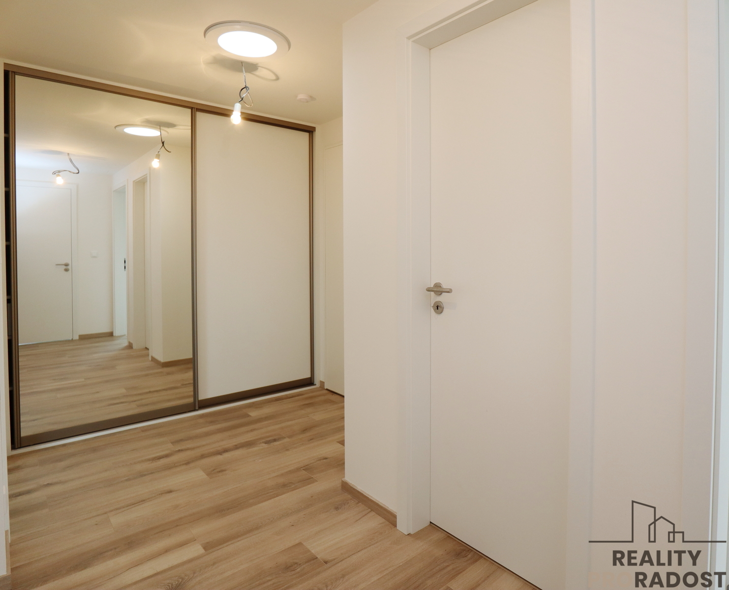 Jednotka se nachází ve 4. podlaží novostavby s výtahem a sestává ze vstupní předsíně, ve které je umístěna šatní skříň vyrobená na míru, dále sestává z obývacího pokoje propojeného s kuchyňským koutem, jedné samostatné ložnice, koupelny se sprchovým koutem a wc a komory. K bytu patří sklepní kóje 4,4m2 a jedno parkovací stání v přízemí domu. Další venkovní vyhrazené stání je možné si pronajmout za poplatek.