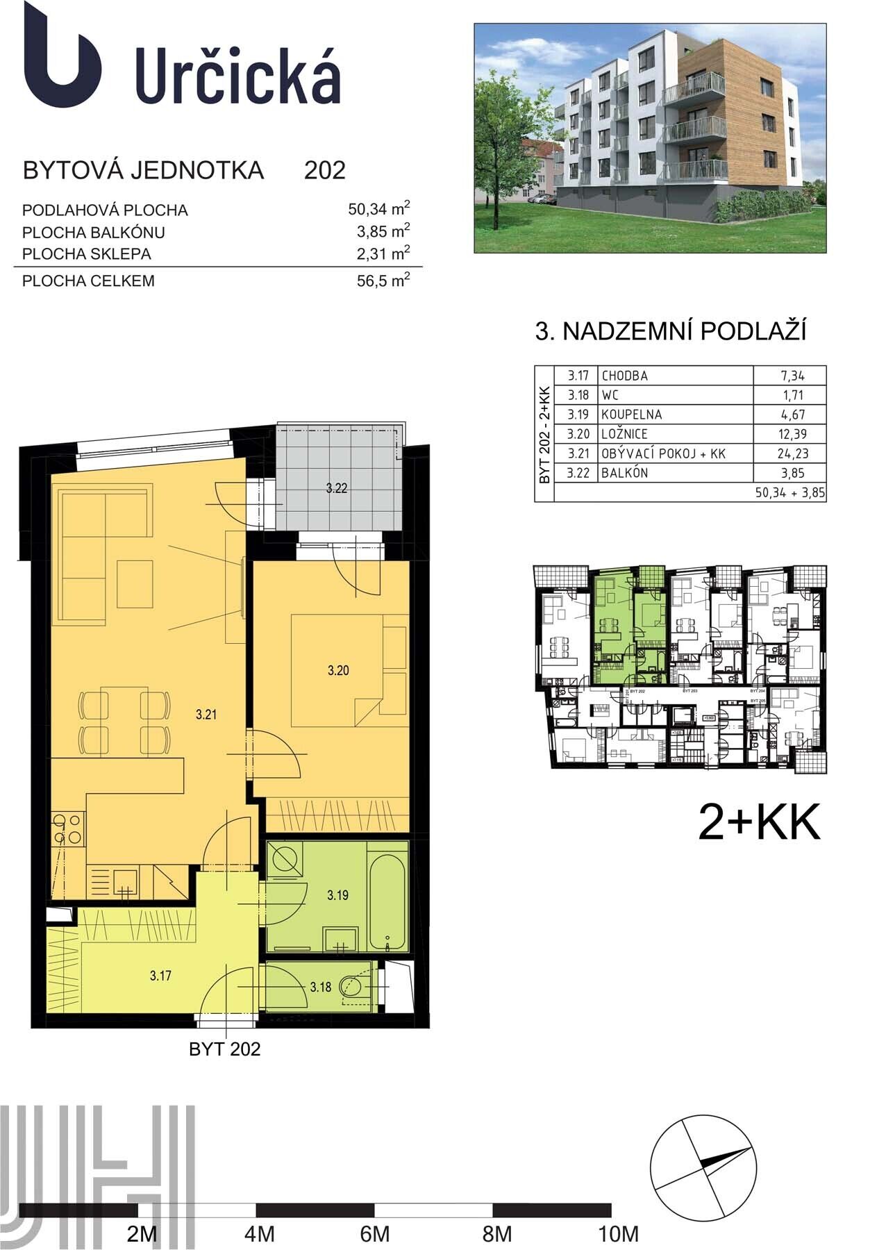 Nabízíme k pronájmu nově dokončený nezařízený byt vel. 2+kk, o podlahové ploše 54 m2, nacházející se v 2. patře menšího bytového domu na jižním okraji města Prostějova. Byt je orientovaný na jižní stranu s úžasným výhledem do okolí, má vstupní chodbu se šatnou, obývací pokoj s kuchyňským koutem a vstupem na lodžii, ložnici se vstupem na lodžii a místem pro vest. skříň, koupelnu (sprch. kout, umyvadlo, místo pro pračku a sušičku) a samostatné WC. K bytu je k dispozici sklep umístěný na stejném podlaží jako byt. By je nezařízený, vybavený kuch. linkou včetně spotřebičů (lednice, sporák, myčka, mikrovl. trouba), vinylovými podlahami, venkovními žaluziemi a osvětlením. V bytě je centrální podlahové vytápění a ohřev teplé vody. K bytu je možné si pronajmout garážové stání v přízemí domu za 1.000 Kč/měs. PENB – A. Ihned k bydlení. Elektroměr se přepisuje na nájemce, měsíční spotřeba cca 1.500 Kč/měs. Záloha na vytápění, teplou a studenou vodu: 2.500 Kč/měs.