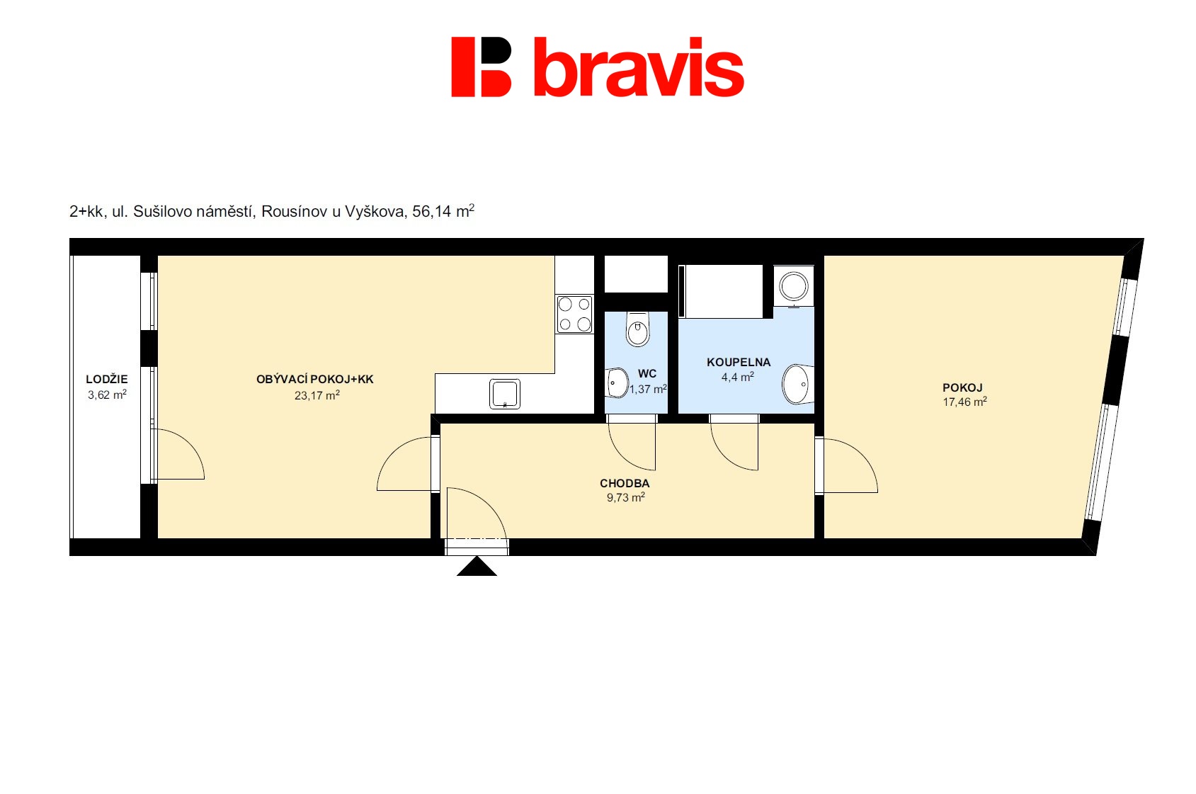 Ve výhradním zastoupení majitele nabízíme k pronájmu byt o dispozici 2+kk s užitnou plochou 56 m2 + lodžie 4 m2, situovaný v 1. patře novostavby nízkoenergetického domu s výtahem. Pokud hledáte pohodlné, moderní a klidné bydlení s nízkými provozními náklady a skvělou dostupností do Brna či Vyškova, tento byt je přesně pro vás!Byt je koncipován jako částečně zařízený, s důrazem na praktičnost a moderní vzhled:Prostorný obývací pokoj s kuchyňským koutem (23 m2): Kuchyňská linka na míru včetně všech vestavných spotřebičů (indukční varná deska, digestoř, elektrická trouba, myčka, lednice s mrazákem, mikrovlnná trouba). Z obývací části přímý vstup na lodžii s výhledem do klidného vnitrobloku.Ložnice (17 m2): Samostatný a světlý pokoj, připravený k zařizování dle vašich potřeb.Koupelna (4 m2): Moderní sprchový kout, umyvadlo a přípojka na pračku.Oddělená toaleta (1 m2): Včetně umyvadla.Chodba (10 m2): Vestavěná skříň s věšákovou stěnou nabízí dostatek úložného prostoru.Nadstandardní vybavení zahrnuje venkovní žaluzie, kvalitní plastová okna s izolačními trojskly, domácí videotelefon, podlahové vytápění a vysokorychlostní internet (optický kabel). K bytu je možné pronajmout sklep za 500 Kč měsíčně a parkovací místo za 1 500 Kč měsíčně v bezpečném zakládacím systému.Dům využívá nejmodernější technologie s důrazem na úsporu energií. Vytápění a ohřev vody zajišťuje tepelné čerpadlo s geotermálními vrty, což znamená velmi nízké provozní náklady a komfortní vnitřní prostředí po celý rok.Rousínov je skvělou volbou pro rodiny, páry i jednotlivce, kteří chtějí žít v klidném prostředí s výbornou dostupností. Do Brna se dostanete za cca 25 minut po dálnici D1 nebo pohodlně vlakem či autobusem. Samotná obec nabízí základní i mateřskou školu, sportovní areály, koupaliště, lékařskou péči, poštu i železniční stanici. Vše podstatné pro pohodový život je v dosahu několika minut chůze.Pokud hledáte moderní, útulný a energeticky úsporný byt v atraktivní lokalitě s vynikající dostupností, neváhejte mě kontaktovat. Prohlídky jsou možné po domluvě. Prohlídky jsou možné po domluvě s uvedeným makléřem.Možnost zajištění jednorázového či pravidelného úklidu naší úklidovou službou.