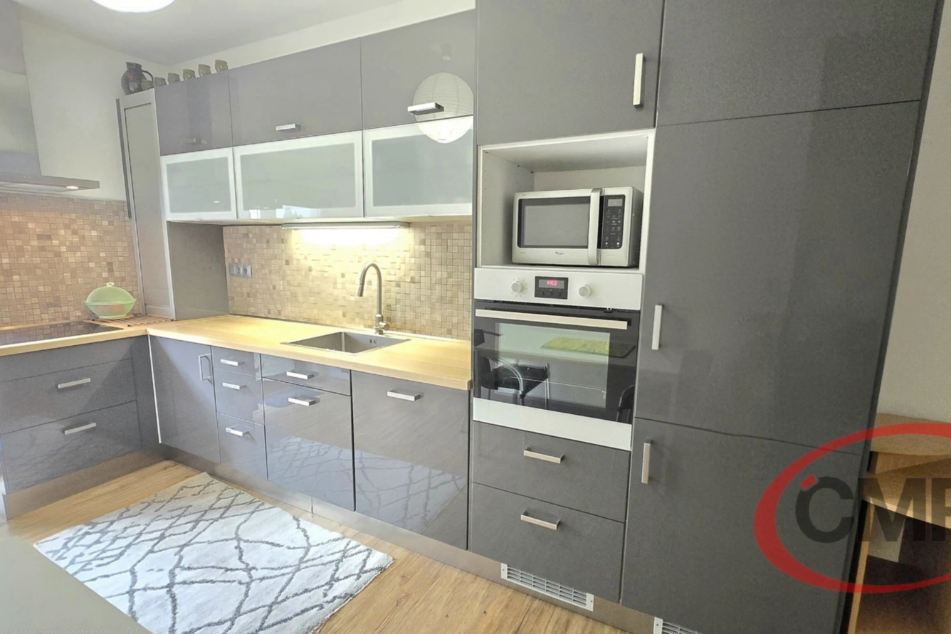 Byt se nachází v prvním nadzemním podlaží třípodlažního domu a lze jej snadno přístupnit díky bezbariérovému přístupu. Užitná plocha bytu dosahuje 57 m², což zajišťuje dostatek prostoru pro pohodlné bydlení. V bytě se nachází moderně vybavená kuchyň, která je spojena s obývacím pokojem, a uzavíratelnou ložnicí se vstupem na terasu. Vnitřní vybavení bytu zahrnuje kvalitní prvky, které přispívají k celkovému luxusnímu dojmu, jako jsou skvělé světelné podmínky či elegantní design.