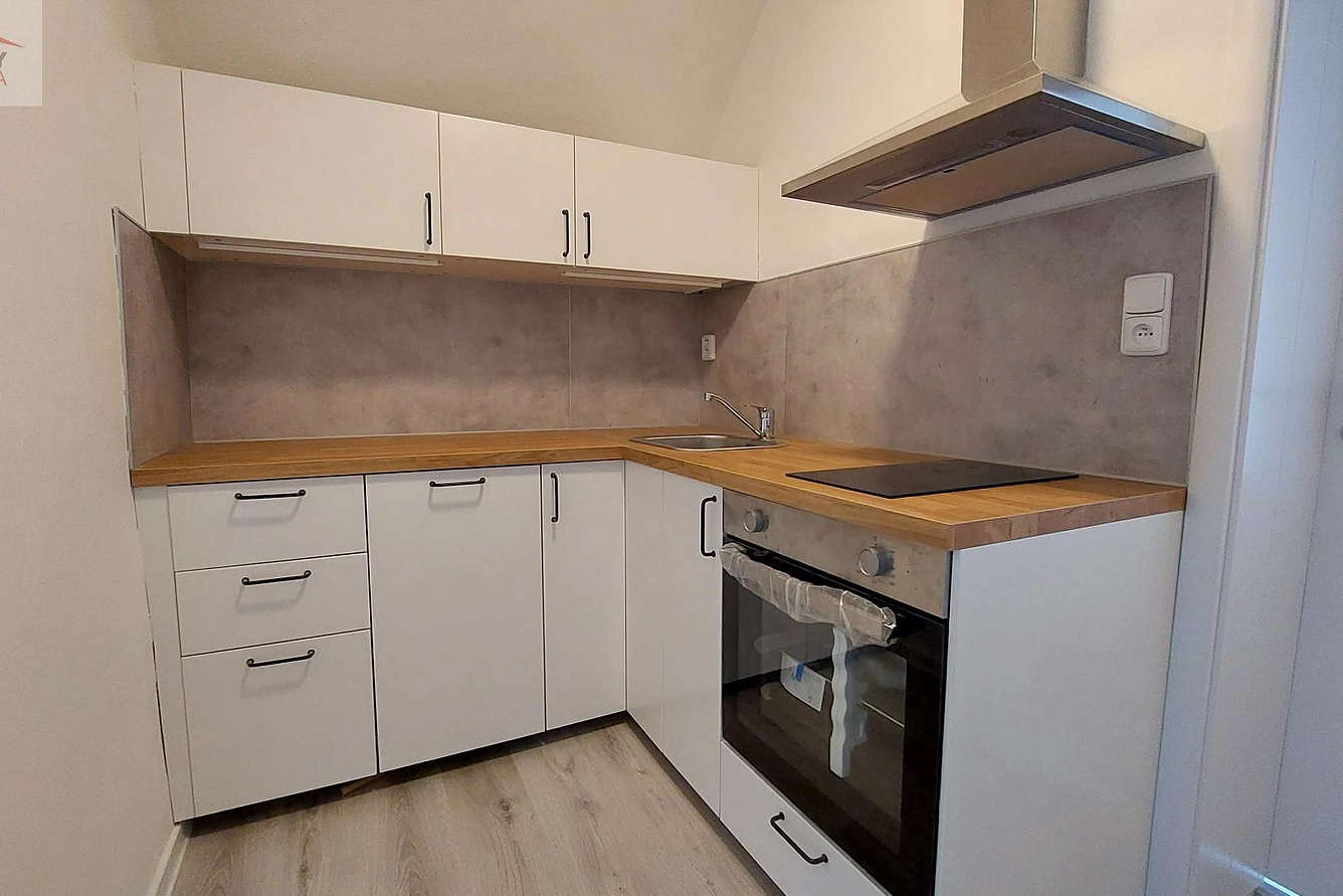Nabízíme k pronájmu byt o dispozici 2+kk ve Valašském Meziříčí na ul. Na Příkopě. Nově zbudovaný byt v roce 2023 o ploše 39 m2 se samostatným vchodem se nachází v prvním patře domu s dalšími nájemními byty v klidné ulici. V kuchyňském koutu je kuchyňská linka s dvouplotýnkovou indukční varnou deskou, digestoří s odtahem, myčkou a el. troubou. Koupelna je se sprchovým koutem, umyvadlem se skříňkou, zrcadlem se skříňkou a osvětlením, žebříkovým radiátorem, obklady, dlažbou, místem pro pračku a závěsným WC. V pokojích a v kuchyňském koutu je plovoucí podlaha. Topení ústřední tepelným čerpadlem, ohřev vody el. bojlerem. Byt má samostatné měřiče elektřiny a vody. Cena nájmu 11.500 Kč/měs. + zálohy na energie včetně tepla, vody a elektřiny ve výši 2.900 Kč/měs. Kauce 15.000 Kč. Pronajímatel upřednostňuje nájemníka nekuřáka bez domácích zvířat. K pronájmu byt 2+kk ve Valašském Meziříčí na ulici Na Příkopě.