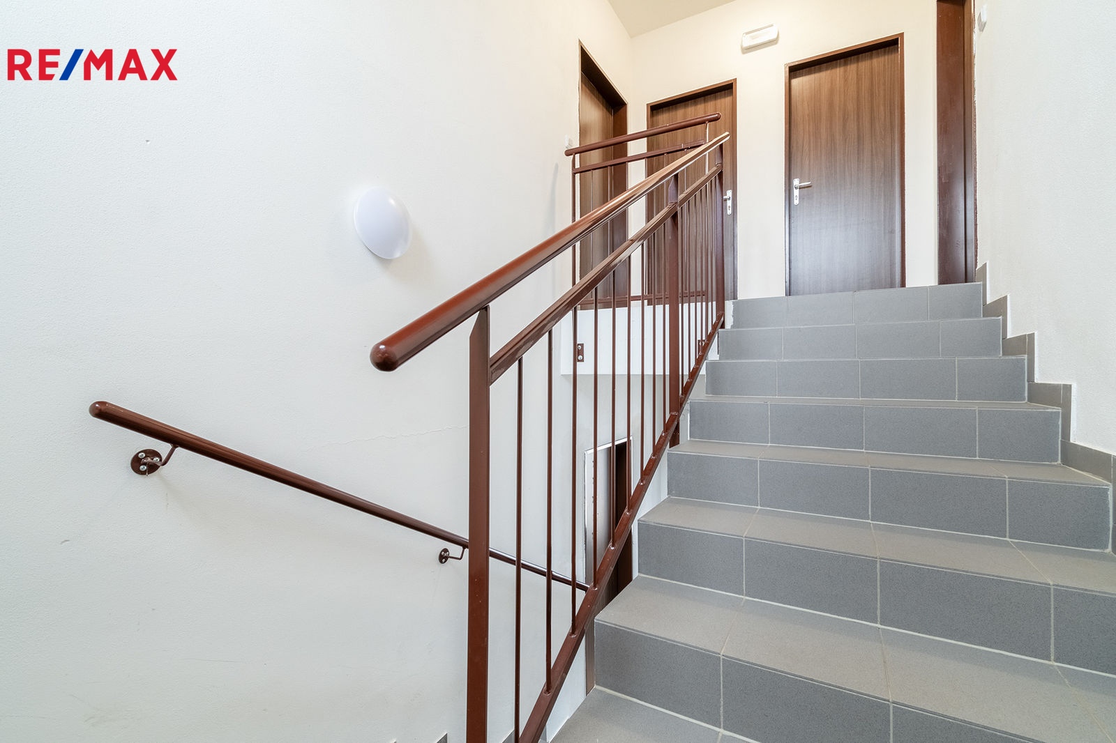 K dispozici je prostorný obývací pokoj s plně vybavenou kuchyňskou linkou, jejíž součástí je indukční varná deska, elektrická a mikrovlnná trouba, myčka nádobí a kombinovaná lednice s mrazákem. Dále útulná ložnice, koupelna se sprchovým koutem, toaletou a místem na pračku. Součástí je také vlastní skladovací kóje umístěná na chodbě, hned vedle bytu. A nesmíme samozřejmě opomenout balkón, který je propojen francouzským oknem s obývacím pokojem.