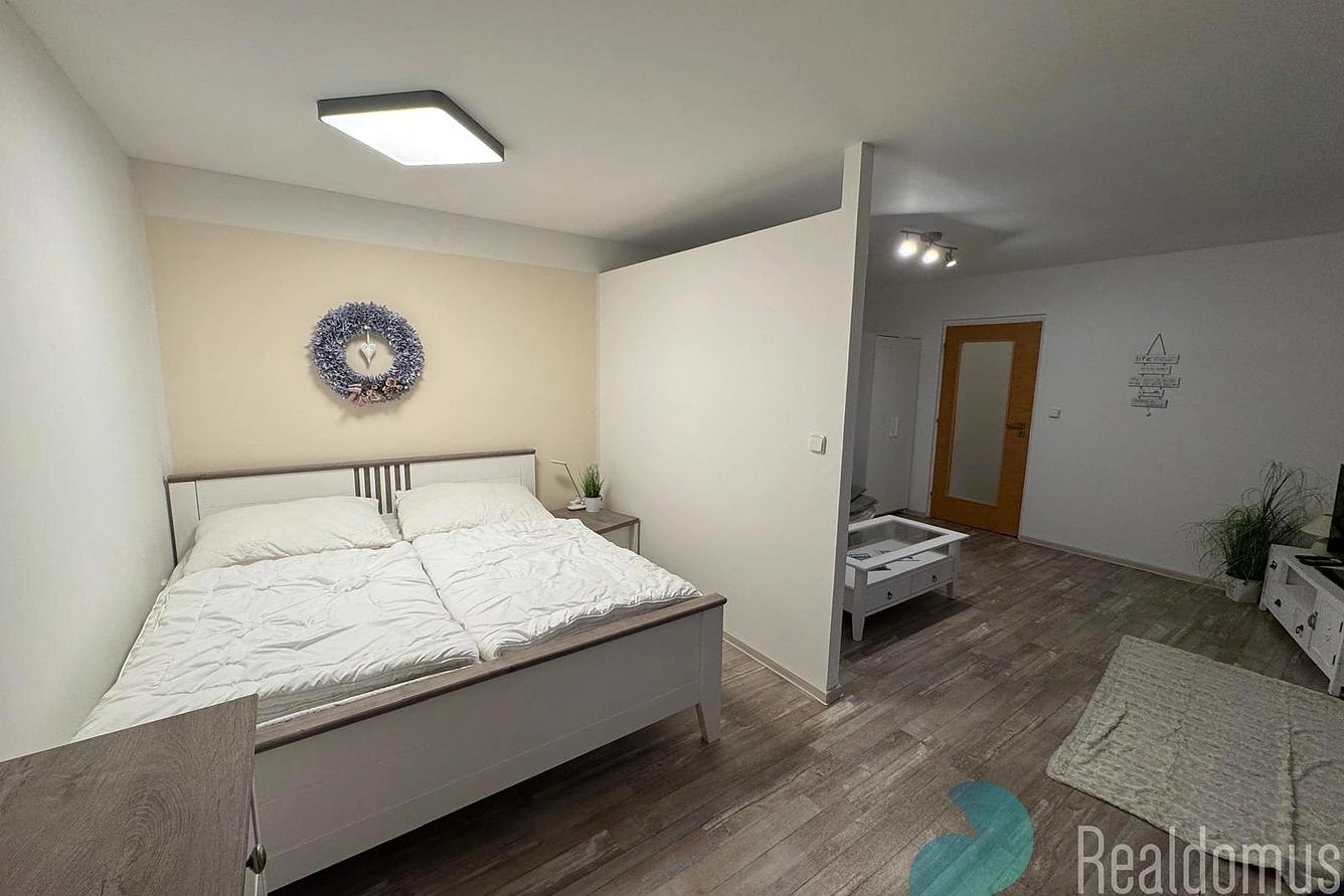 Byt je kompletně vybavený a nabízí moderní kuchyňskou linku s vestavěnými spotřebiči, jídelní kout, útulný obývací pokoj, prostornou ložnici s dostatkem úložných prostor a koupelnu se sprchovým koutem.