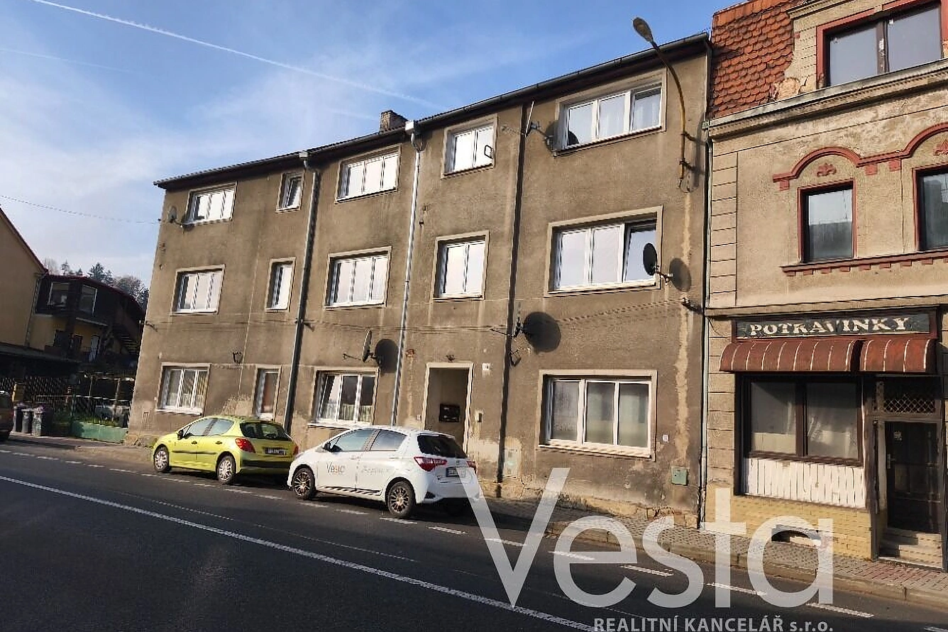 Slunný byt o velikosti 3+1 a podlahové ploše 69 m2 se nachází ve 2. patře činžovního domu v Benešově nad Ploučnicí.