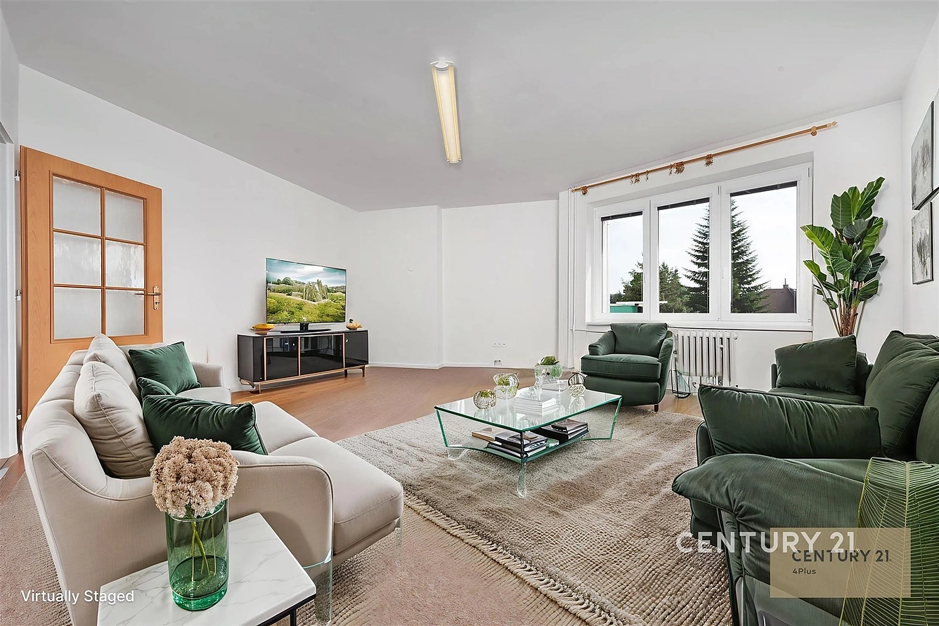 Tento byt 3+1 s balkonem a společnou zahradou za domem má podlahovou plochu 68 m2. Nachází se ve třetím patře cihlového domu po revitalizaci bez výtahu.
