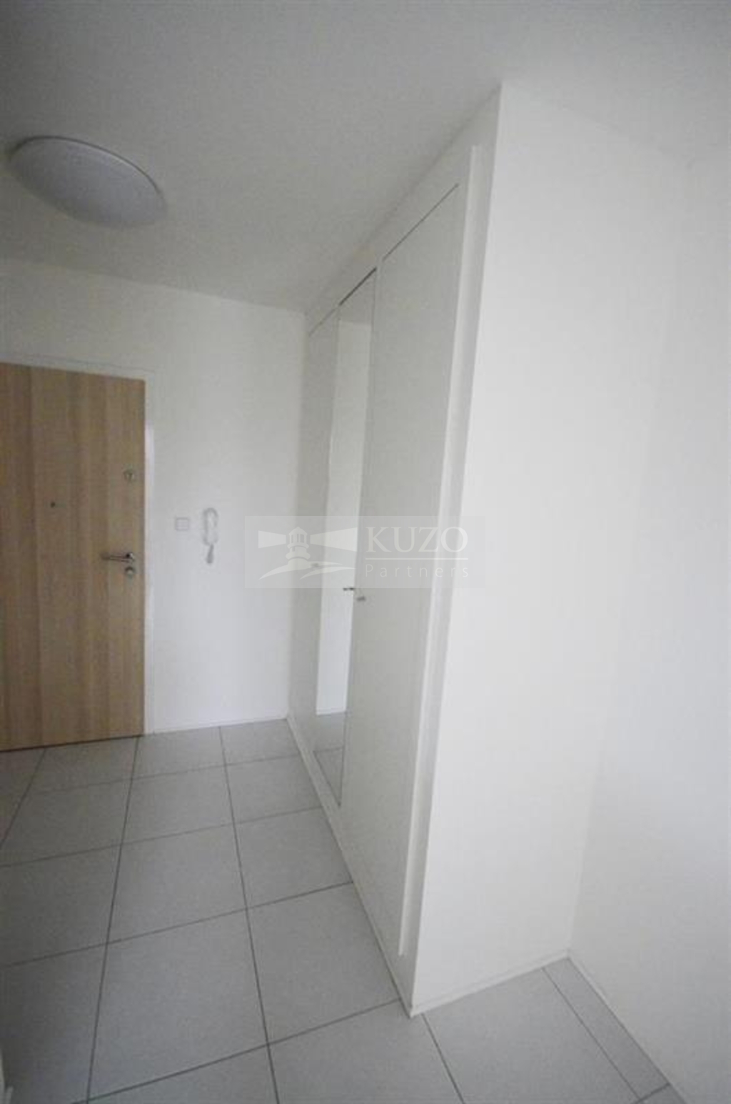 Součástí vybavení zůstává vše, co vidíte na fotografiích (vestavěná skříň, policová sestava, věšák).