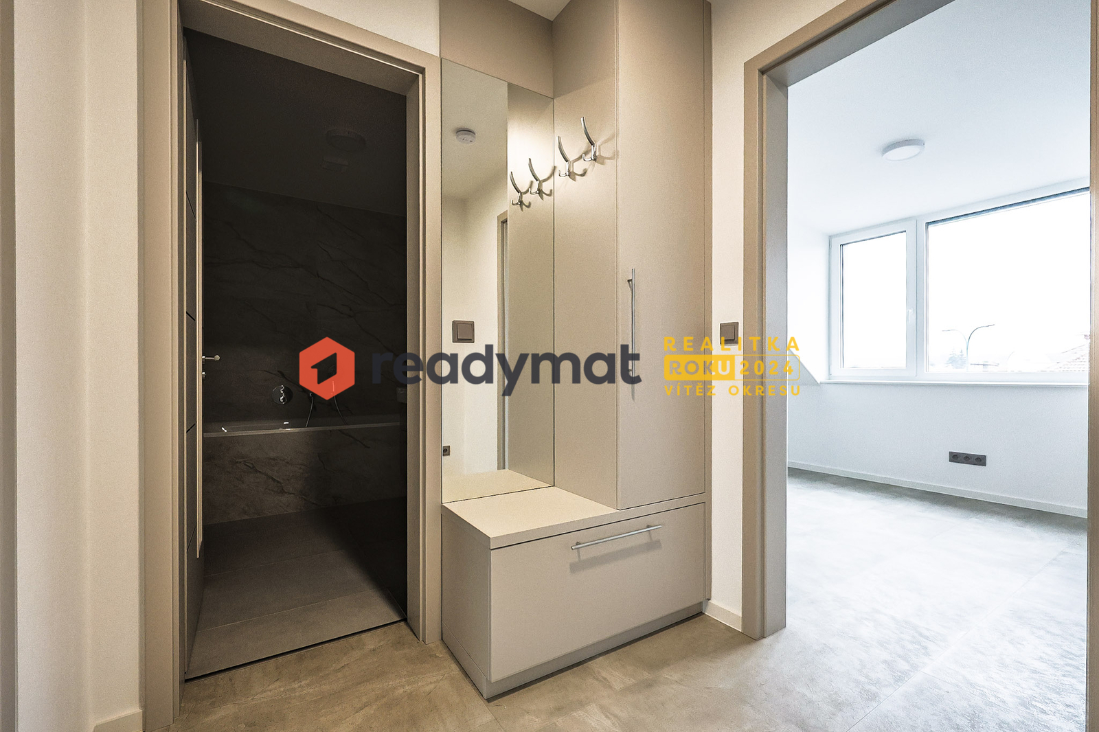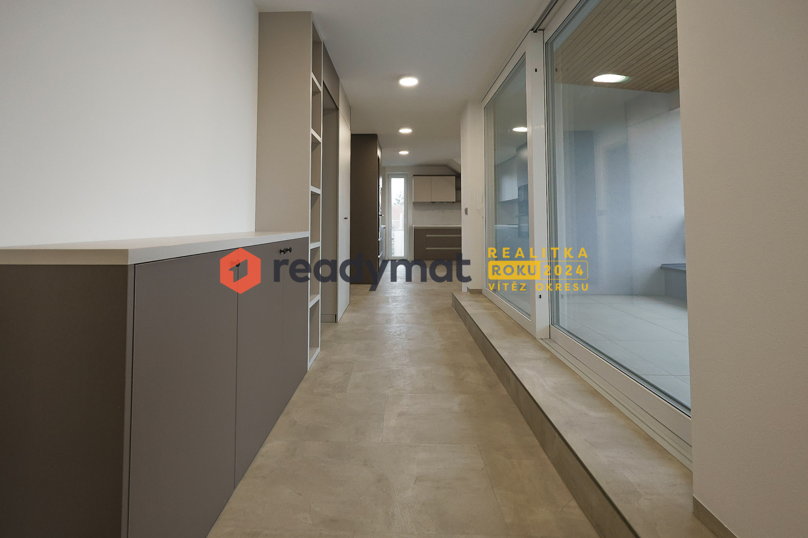 Hlavní předností tohoto moderního bytu je prostorná terasa, která přímo vybízí k odpočinku, grilování s přáteli nebo dokonce k instalaci vlastní vířivky.