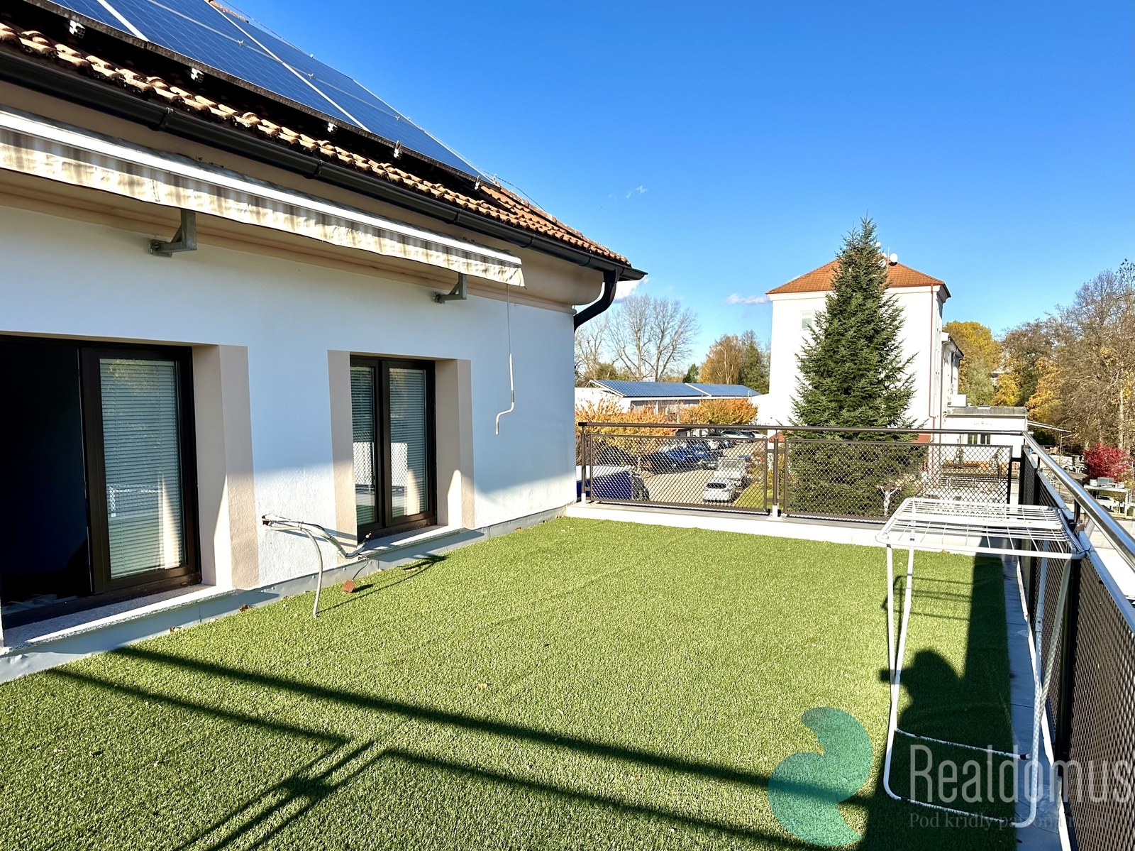 Obrovskou terasu 35 m² – ideální pro ranní kávu, večerní grilování nebo odpočinek po práci. Navíc je vybavena velkou markýzou, takže si ji užijete za každého počasí.