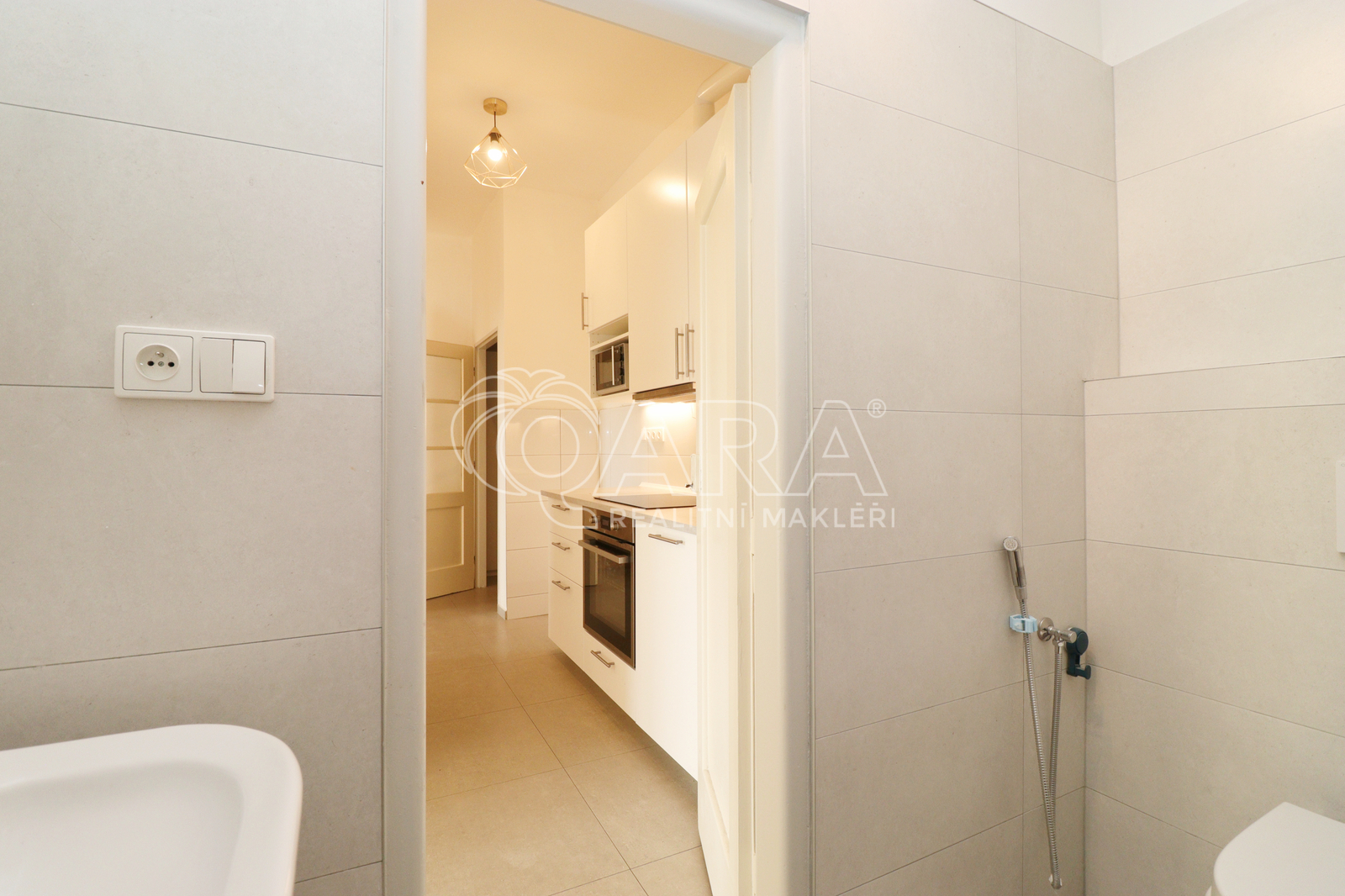 V bytě se nachází kuchyň vybavená kuchyňskou linkou na míru, sklokeramickou varnou deskou, digestoří, zabudovanou myčkou a mikrovlnnou troubou (možnost odkupu). Koupelna je spojena s WC a je vybavena pračkou na prádlo s horním plněním (k odkupu).