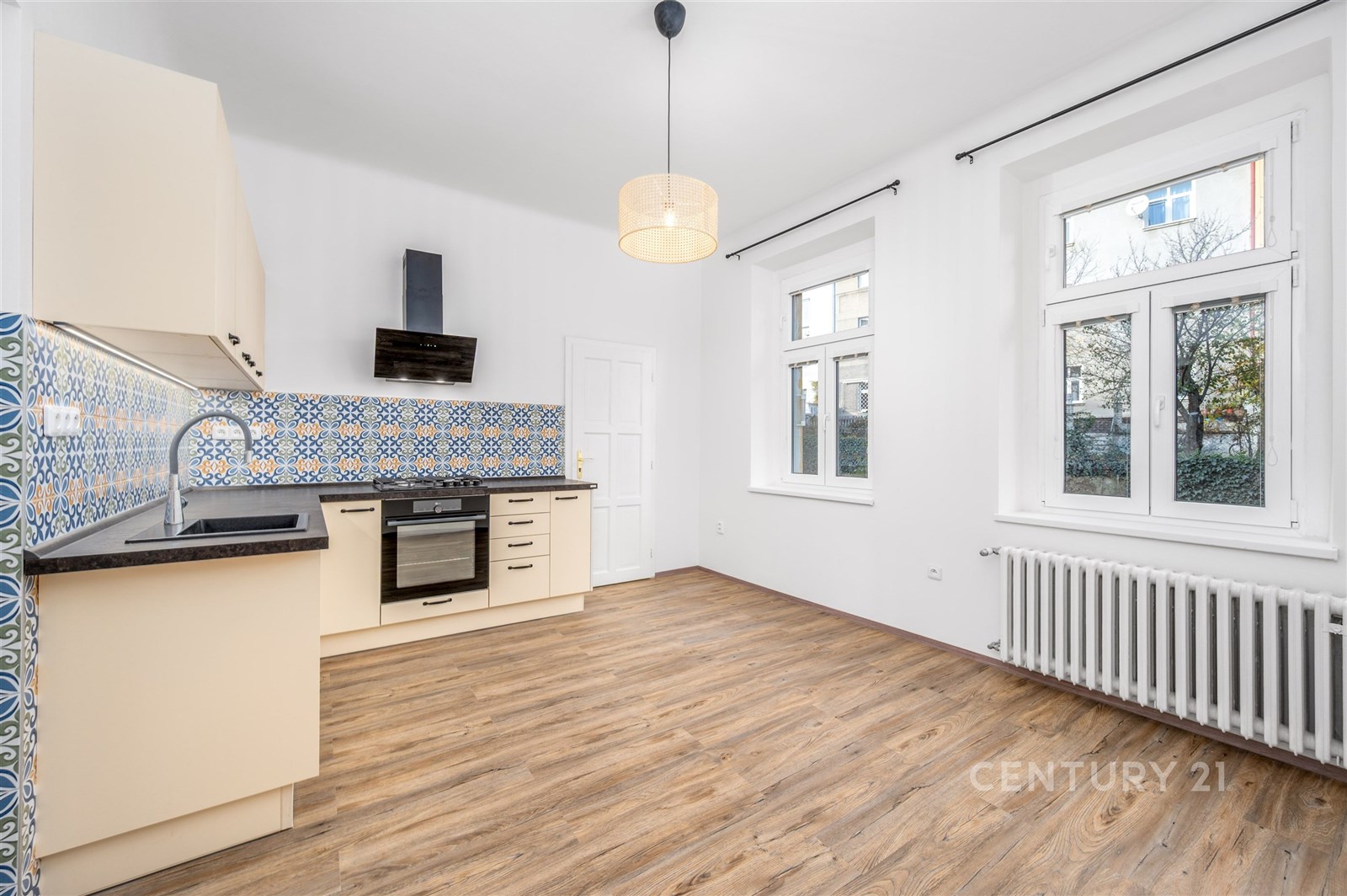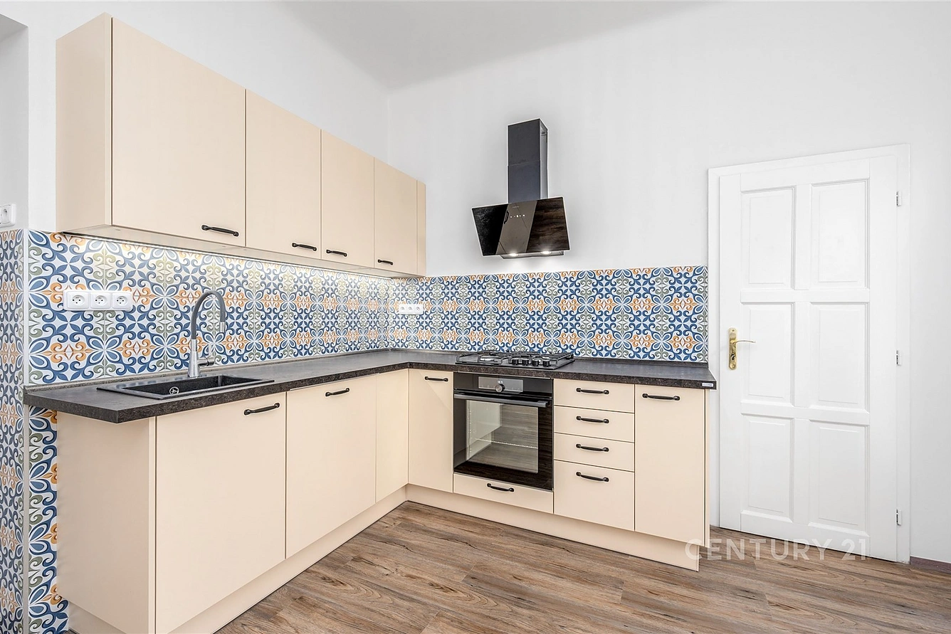 V bytě jsou ale i moderní prvky, které zajišťují vaše pohodlí: nová plastová okna, kvalitní vinylová podlaha a stylová dlažba. Zcela nová kuchyňská linka od firmy Oresi čeká na svého prvního uživatele a nabízí vše, co je potřeba – myčku, plynovou varnou desku, elektrickou troubu i odsavač par.