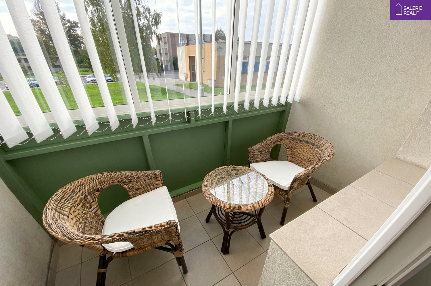 Byt, který je po rekonstrukci, má vyzděné bytové jádro – v koupelně je sprchový kout, pračka a zrcadlová a umyvadlová skříňka. WC je samostatné. V kuchyni je plynový sporák s elektrickou troubou, digestoř, lednice a praktická spíž. Vedle kuchyně je průchozí pokoj se zasklenou lodžií, žaluziemi a posezením. Vstupy do obývacího pokoje a ložnice jsou samostatné.