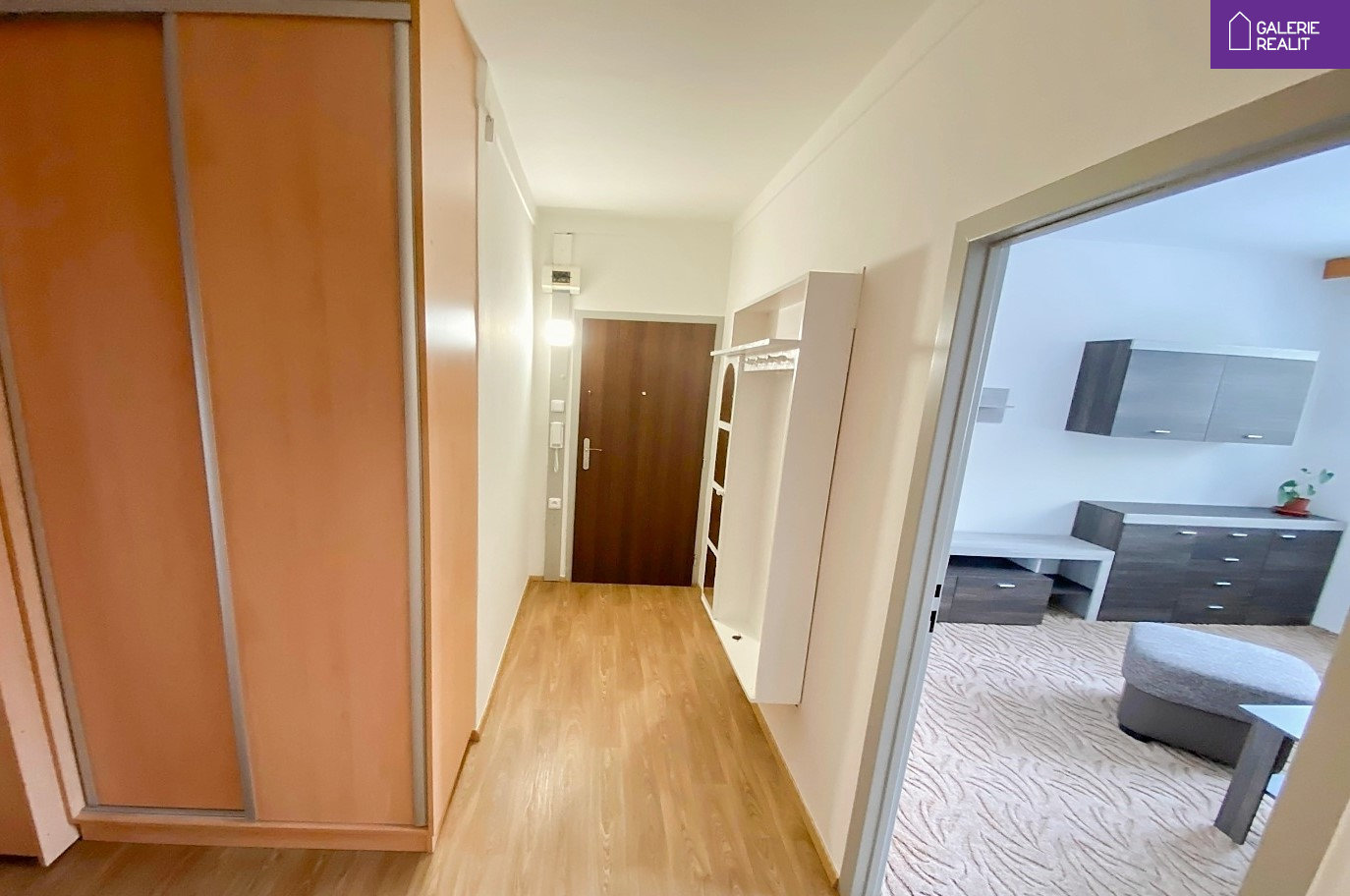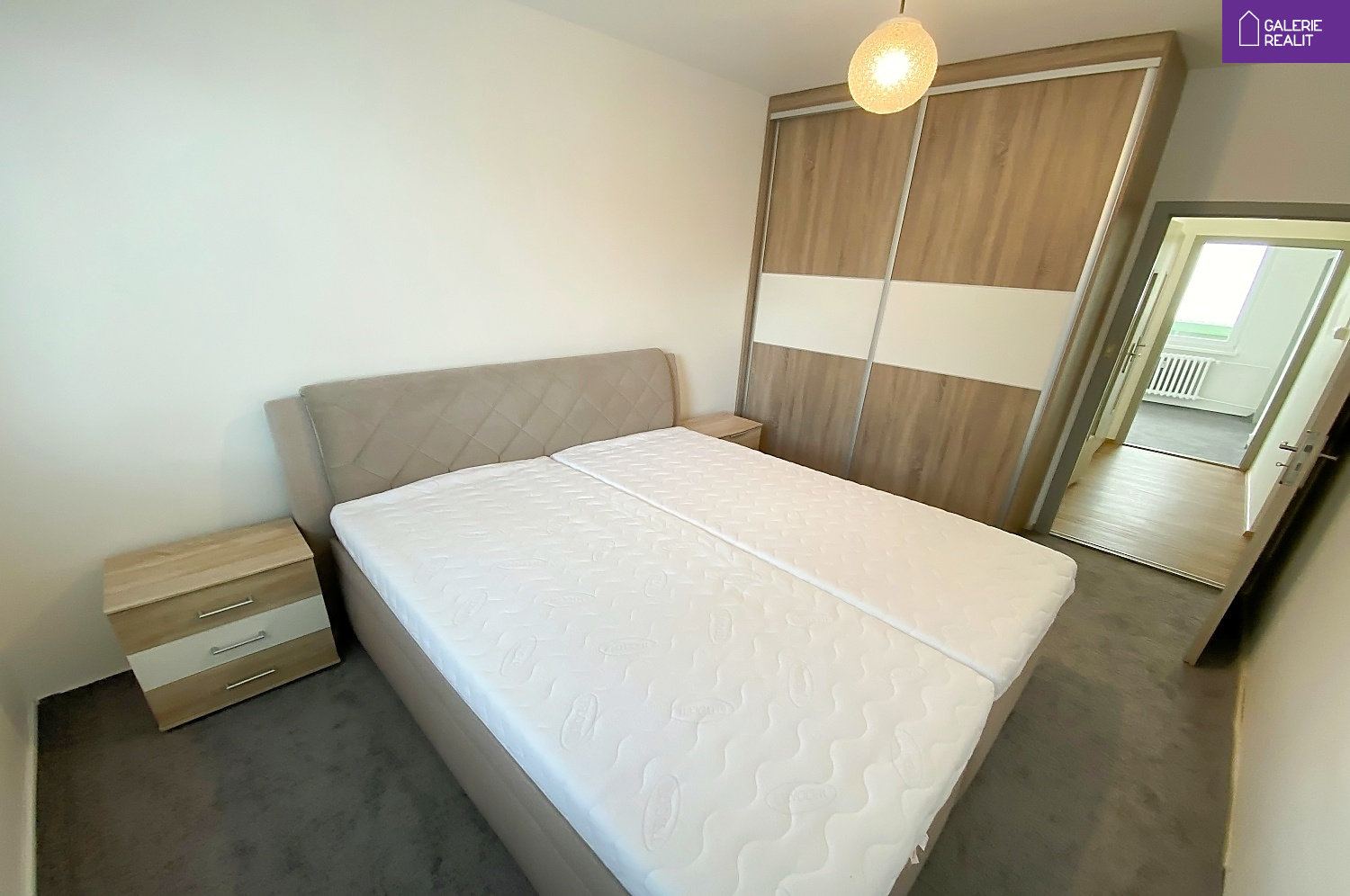 Byt je vybaven novými koberci, sedací soupravou s konferenčním stolem a obývákovou stěnou. Dále je pak vybaven dvoulůžkovou postelí s nočními stolky a šatní skříní. Výhodou jsou také vestavěné skříně v předsíni.