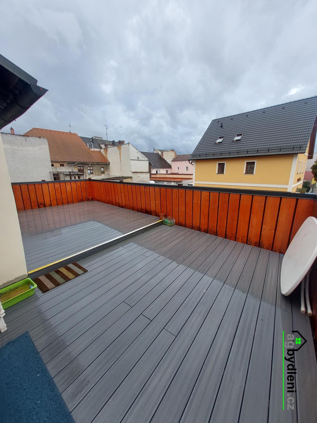 Naše RK Vám nabízí k pronájmu prostorný byt 3+1 o dispozici 70m2, který se nachází v 1. patře domu v centru města Stříbra, pouhých 100m od náměstí, v ulici Bezručova. Dominantou tohoto bytu je velká terasa o rozloze 60m2, která náleží výhradně k tomuto bytu a poskytuje dostatek prostoru k odpočinku i posezení s přáteli. Dispozice bytu je velmi praktická. Z prostorné chodby vstoupíte do obývacího pokoje, ze kterého je přístup do kuchyně. Z kuchyně vede vstup do koupelny a na samostatné WC.Z obývacího pokoje lze dále vstoupit na velkou terasu a také do dalších dvou pokojů. Byt má vlastní podružné měření všech energií. Byt má svůj bojler na ohřev teplé vody. Pronajímá se nevybavený pouze Kuchyňská linka se sporákem. Nájemné je 13 000 kč + zálohy na energie voda 1 000,-kč, elektřina 2 500,-kč a topení 2 500,-kč. Kauce při předání bytu jsou dva měsíční nájmy 26 000,-kč. Odměna RK jeden měsíční nájem + 21% DPH při podpisu Rezervační smlouvy. Byt je volný ihned k nastěhování. Majitel preferuje dlouhodobý pronájem a velmi slušné nájemníky. Pro domluvení prohlídky neváhejte kontaktovat našeho makléře.