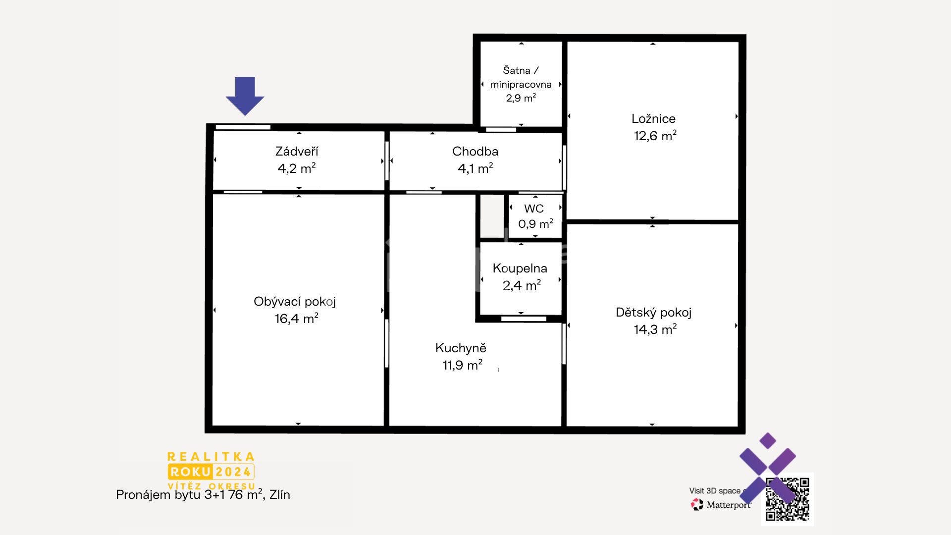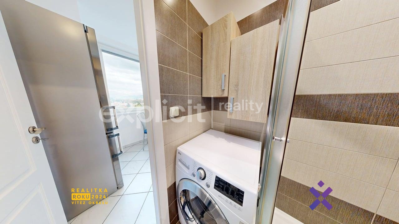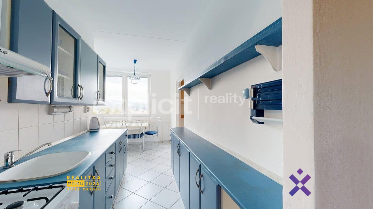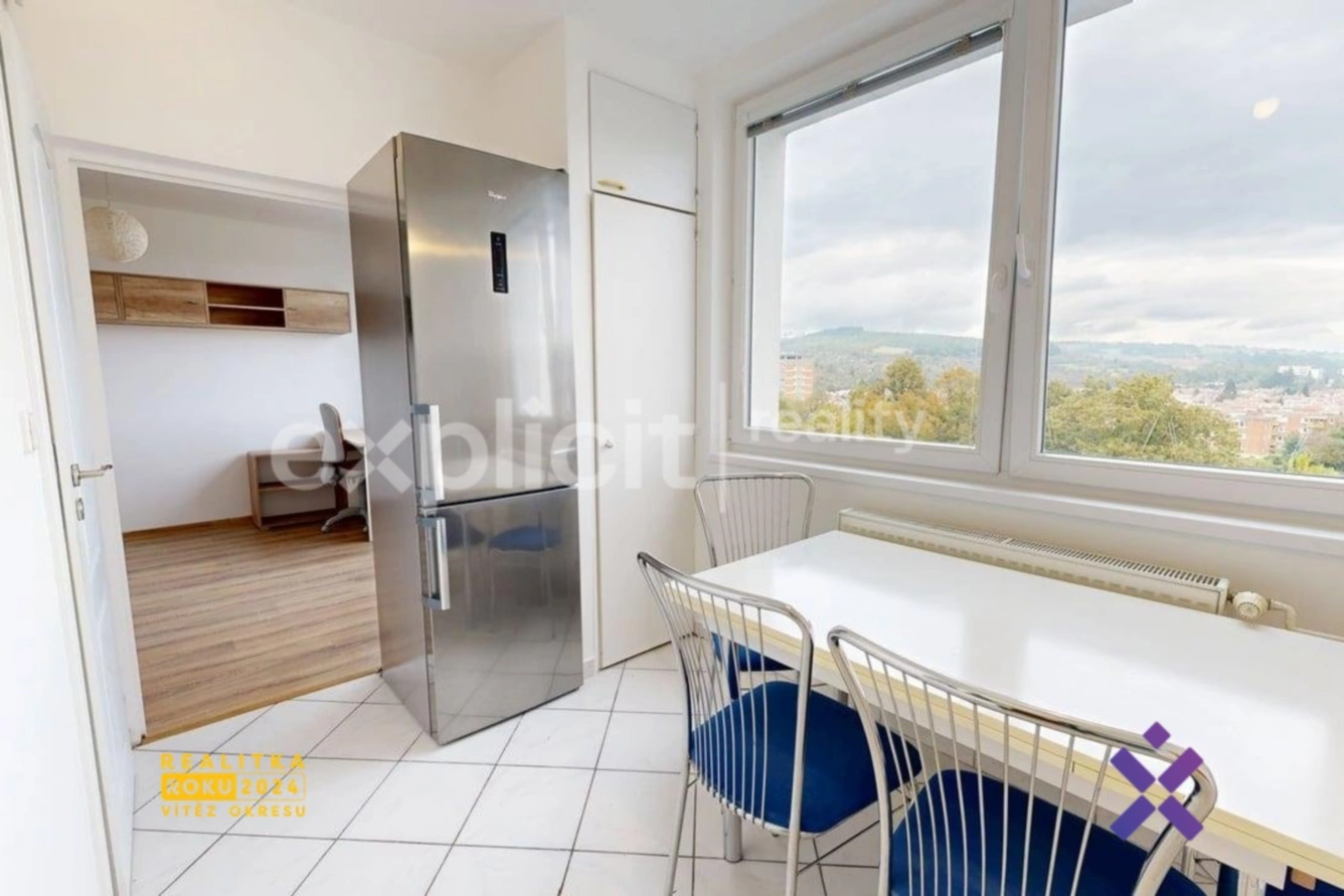 Hledáte příjemné a pohodlné bydlení s krásným výhledem na město?Nabízíme k pronájmu světlý a vzdušný byt 3+1 o celkové ploše 76 m2 s prostorným balkonem, který se nachází v posledním, 8. patře panelového domu na adrese Kúty 1958, Zlín.Byt nabízí klidné a útulné bydlení s dostatkem prostoru pro rodinu i pár. Díky východní orientaci si užijete ranní slunce a příjemnou světlost po celý den, zatímco z balkonu se otevírá působivý výhled na město a okolní zeleň.Lokalita:Dům se nachází v oblíbené lokalitě s vynikající občanskou vybaveností – mateřská i základní škola jsou přímo u domu, stejně jako dětské hřiště. Zastávka MHD je vzdálená pouhé 2 minuty chůze, centrum města je dostupné za 20 minut pěšky.Vybavení:Byt je z větší části vybavený – k dispozici je kuchyňská linka se spotřebiči a nádobím, lednice, jídelní stůl se židlemi, manželská postel s šatními skříněmi v ložnici, patrová postel a psací stůl v dětském pokoji, barový stůl v obývacím pokoji, skříně v chodbě, koupelna se sprchovým koutem a pračkou kombinovanou se sušičkou prádla a další vybavení. Výhodou je samostatná šatna/minipracovna. K bytu náleží dále komora na patře a sklepní kóje.Byt je připraven na připojení k internetu (optický kabel, službu si nájemník sjednává individuálně).Dům prošel rekonstrukcí (zateplení pláště i střechy, výtah, balkony,..)Náklady na bydlení:Nájemné: 14 300 Kč / měsícZálohy na energie a služby: 6 612 Kč / měsícVratná kauce: 21 000 KčOdměna RK: 21 000 KčDalší informace:Byt nabízí komfortní bydlení pro rodinu nebo pár, kteří hledají klidné a praktické místo s výbornou dostupností služeb i centra města. K nastěhování ihned.Pro více informací nebo domluvení prohlídky mě, prosím, kontaktujte. Ráda vám byt osobně představím.