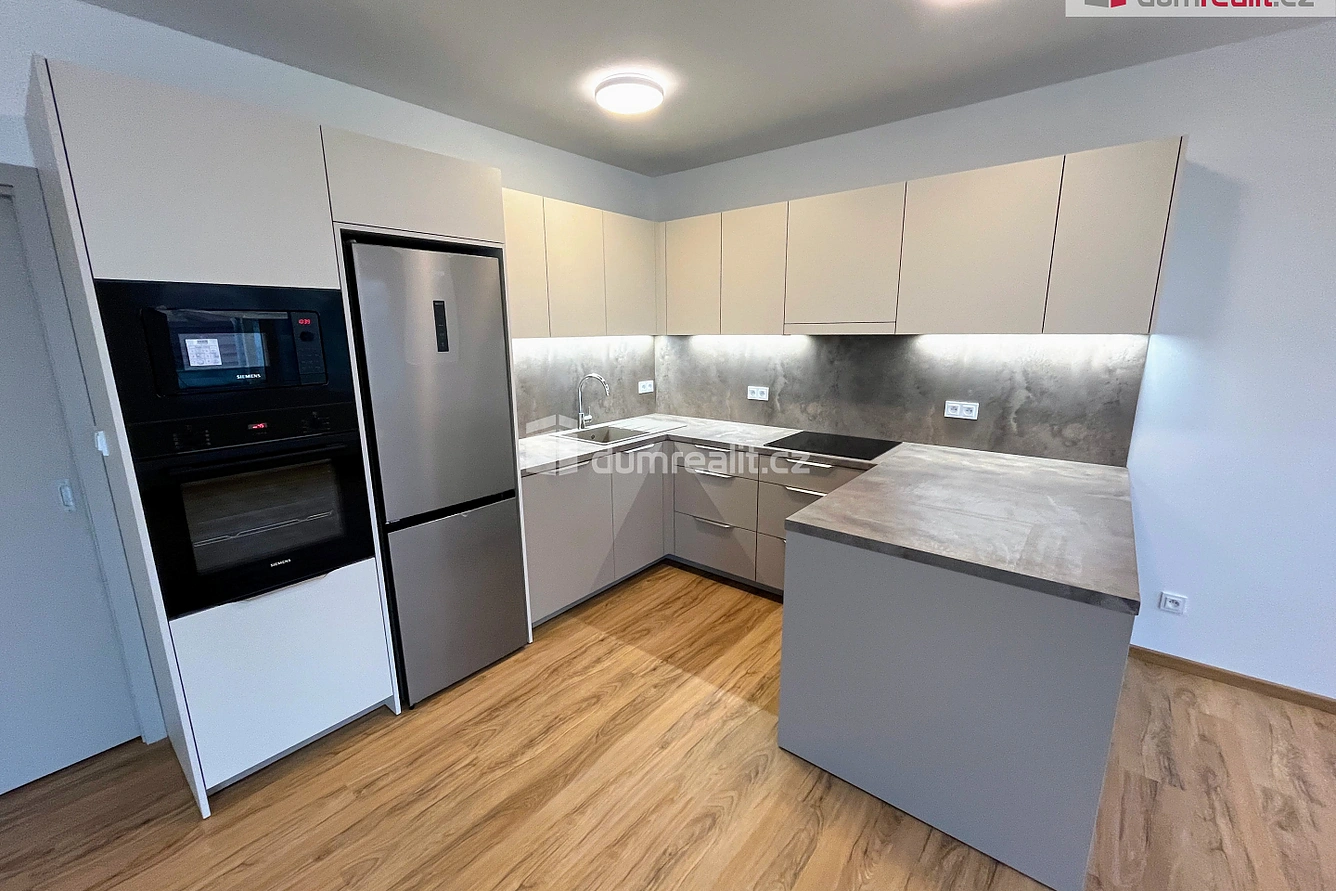 Byt je vybaven kompletní kuchyňskou linkou na míru se spotřebiči (lednice s mrazákem, trouba, mikrovlnná trouba, varná deska, myčka, digestoř). K dispozici je prostorná koupelna se sprchovým koutem a prostorem pro pračku a sušičku. WC je samostatné.