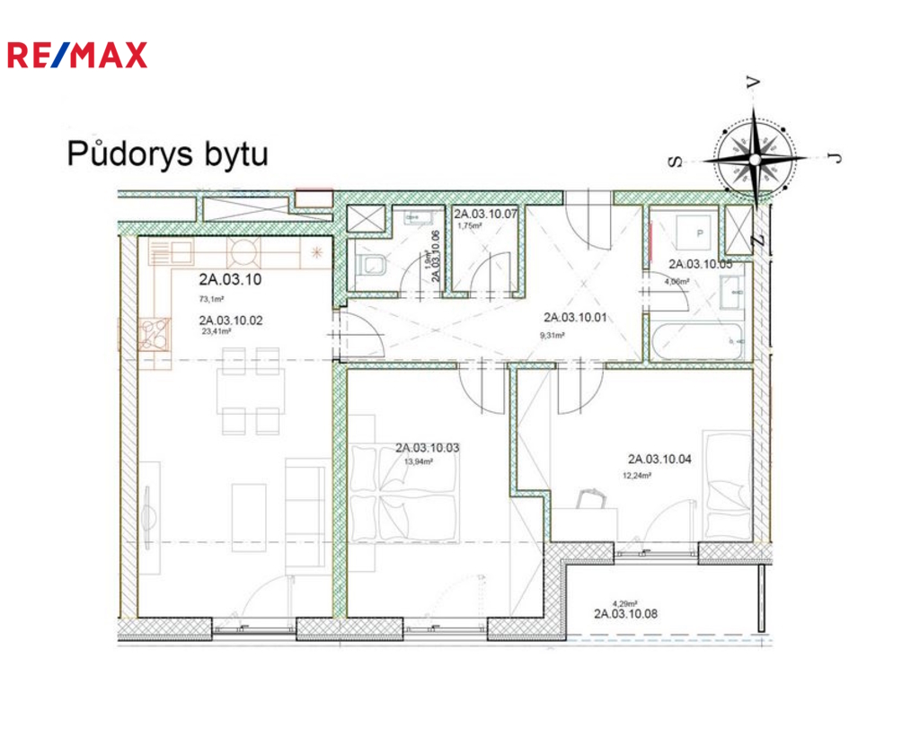 Nabízíme Vám k pronájmu nový, prostorný, slunný byt v dispozici 3+kk, (73m2) + lodžie (4m2) + sklepní kóje (3m2) + garážové stání v ceně nájmu, který je umístěn ve 3NP s výtahem v novostavbě čtyřpatrové budovy s výtahem v ul. Augustina Lukeše 2708, Brandýs nad Labem.
