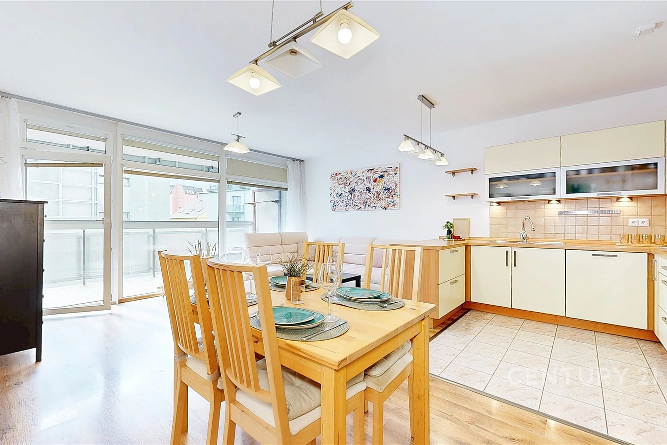 Byt je moderní, vzdušný a příjemně prosvětlený po většinu dne.