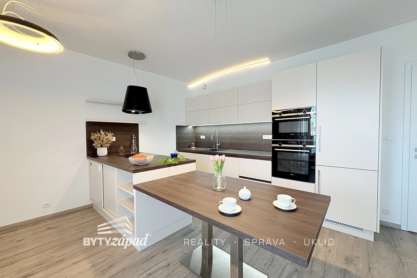 Nabízíme vám k pronájmu nadstandardně zařízený byt 3+kk s garážovým stáním v Plzni, ulice Kollárova. Tento světlý a prostorný byt o rozloze 80 m2 se nachází ve 4. patře novostavby s výtahem. Nabízí pohodlné a moderní bydlení v atraktivní lokalitě poblíž centra, která nabízí veškeré městské pohodlí a skvělou dostupnost. Byt je nabízen k pronájmu částečně vybaven. Na WC a v koupelně je položena dlažba, v obytných místnostech kvalitní vinylová podlaha. Součástí vybavení je na míru vyrobená moderní kuchyňská linka se sklokeramickou varnou deskou, elektrickou troubou, mikrovlnou troubou, vestavěnou lednicí a myčkou. Dále je zde jídelní stůl, skříňky v obývacím prostoru, skříňka v koupelně, předsíňový set, prostorné skříně v šatně a šatní skříň v pokoji. V bytě je centrální rekuperace, rozvedený internet a samozřejmě televizní anténa. V oknech jsou instalovány žaluzie. K bytu náleží sklepní kóje a garážové parkovací místo. Vytápění je zde ústřední. Orientace oken i balkonu do vnitrobloku přináší dostatek soukromí a omezuje hluk z ulice. Nájem zde činí 24.000,- Kč. Zálohy na služby ve výši cca 3.500,- Kč (dle počtu osob). Jistota (vratná kauce) je ve výši 48.000,- Kč. Elektřinu si nájemce přepisuje na sebe. Vzhledem k atraktivní poloze, modernímu provedení a orientaci do vnitrobloku prohlídku tohoto bytu vřele doporučujeme. Pro bližší informace či sjednání prohlídky, volejte prosím na níže uvedené mobilní číslo.