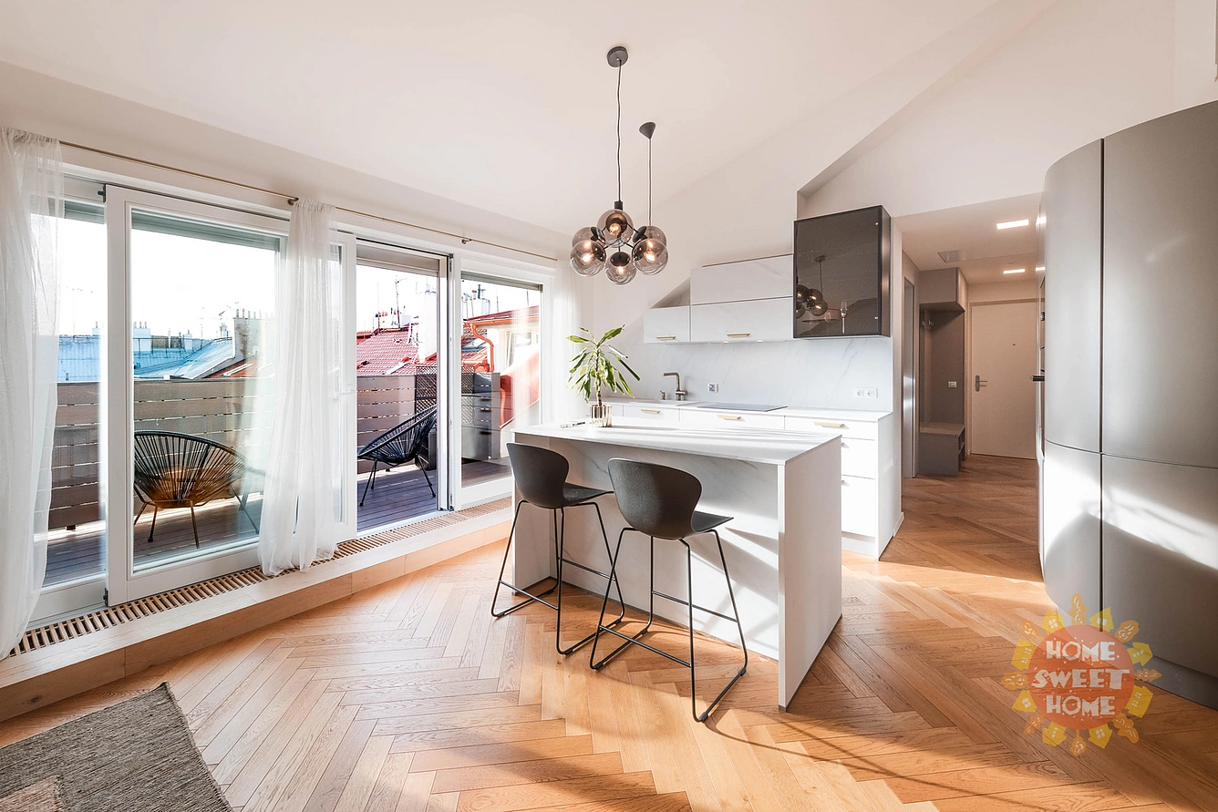 Nabízíme k pronájmu moderní, částečně zařízený byt o dispozici 3+kk a celková ploše cca 110 m2 s terasou a sklepem. Byt se nachází v atraktivní a velmi dobře dostupné lokalitě - ulice Na hrádku, Praha 2 - Nové Město.